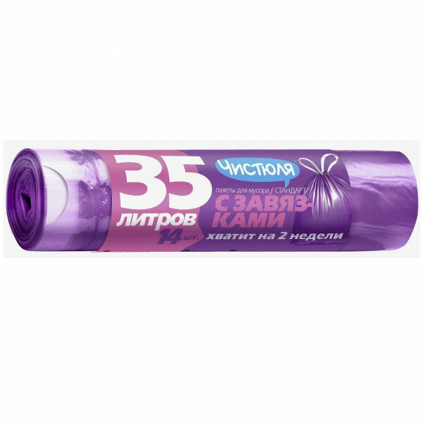 Национальная химическая компания (НХК) Пакеты для мусора Чистюля Стандарт с завязками 35 л 14 шт интересное: