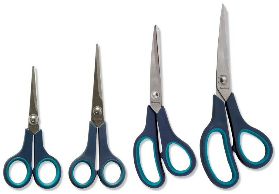 Комплект 21 шт, Ножницы BRAUBERG "Soft Grip", 165 мм, черно-синие, резиновые вставки, 3-х сторонняя заточка, 230761