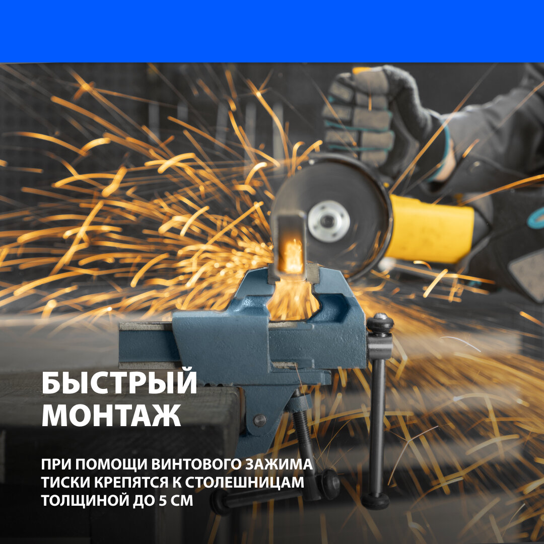 | Плюсы: | Прекрасный зажим к крышке стола. Быстрее крышка стола сломаеться чем тиски отойдут. |