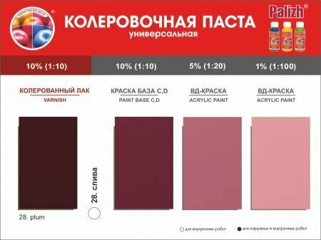 Колеровочная паста Palizh Universal Standart ST-28 слива 0.1 л