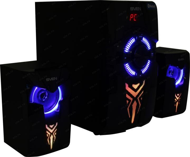 Колонки 2.1 SVEN MS-2070 чёрные (2 x 15W, 1 х 30W, Bluetooth, USB flash, SD card, LED-дисплей, FM-радио, ПДУ, подсветка)