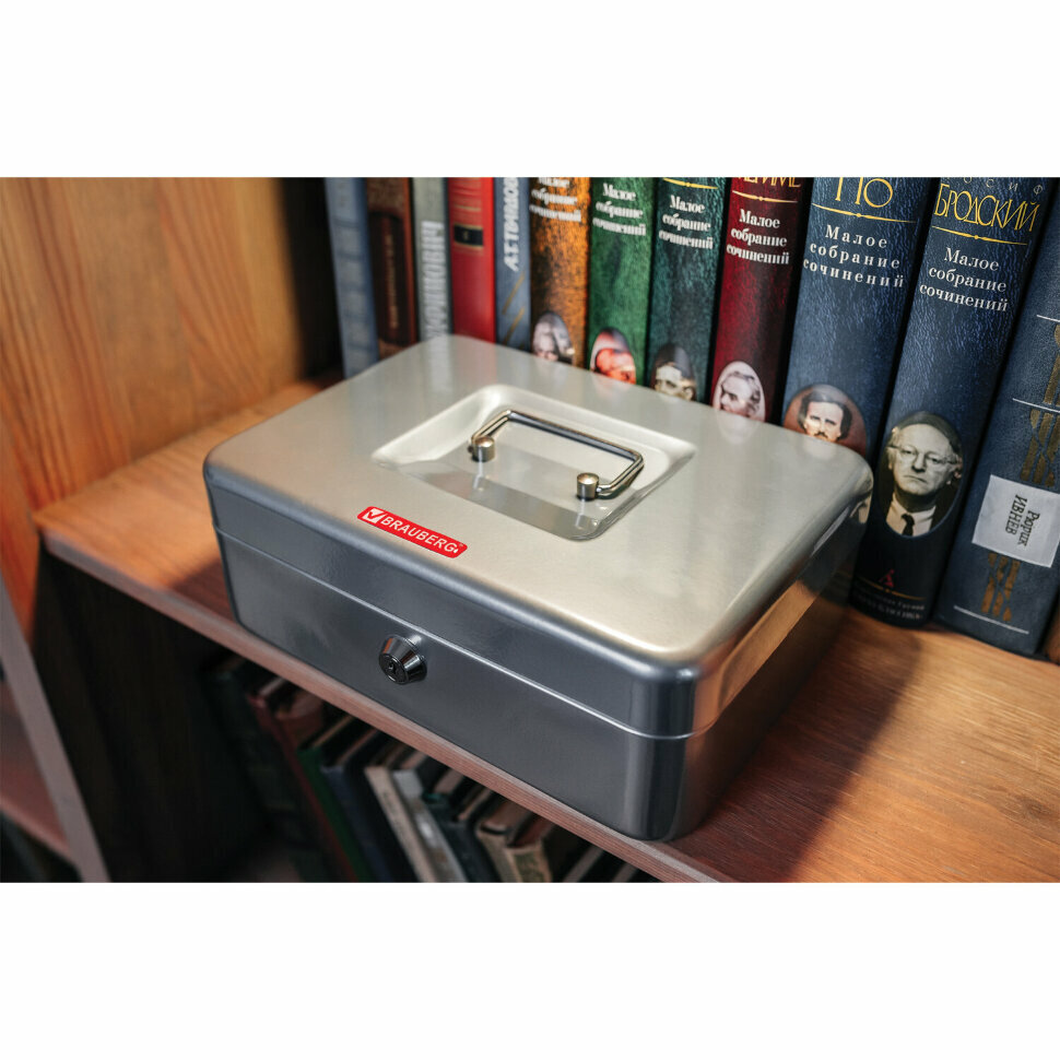 Brauberg Ящик для денег, ценностей, док-ов, печатей, 90х180х250 мм, ключ.замок, серебристый, 291059