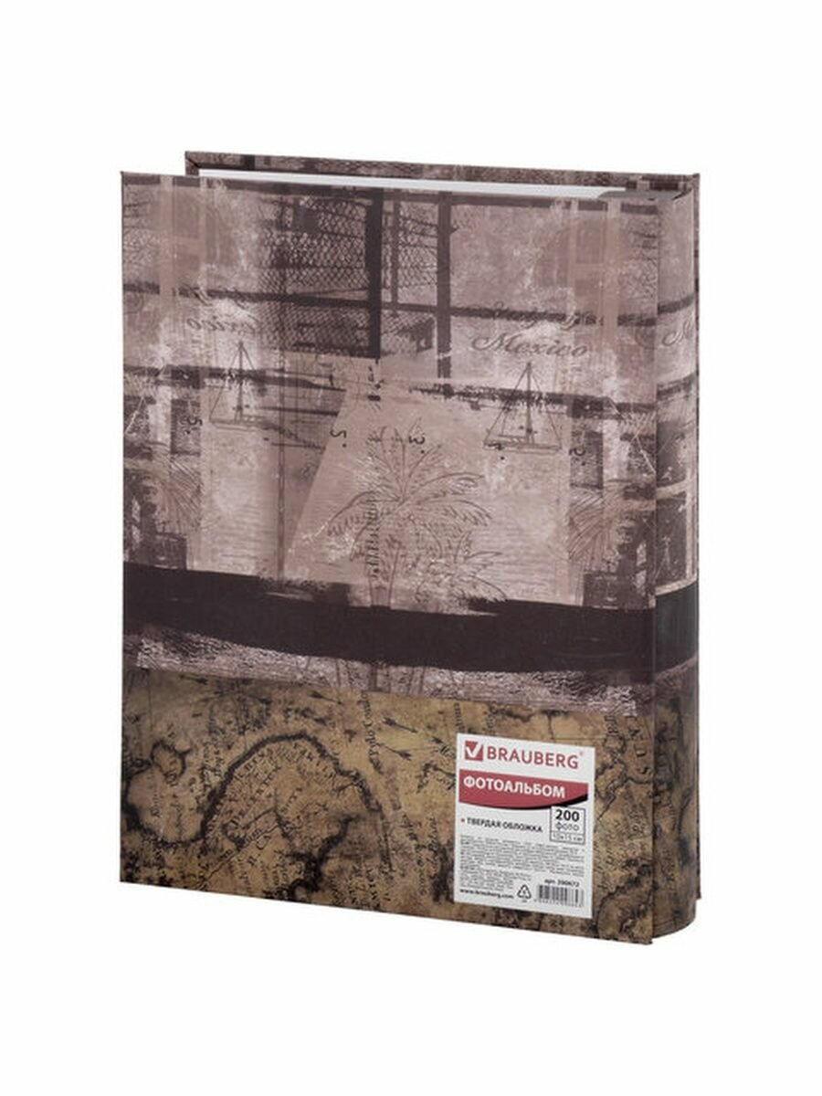 Купить Фотоальбом Brauberg, на 200 фотографий 10х15см, индивидуальный бокс, твердая обложка, путешествие (390672)