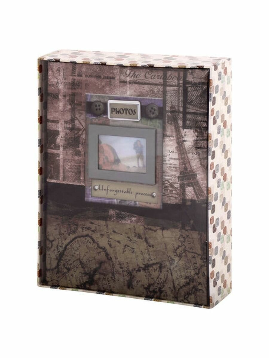 Фотоальбом BRAUBERG на 200 фотографий 10х15 см, твердая обложка, Путешествие, бокс, коричневый, 390672