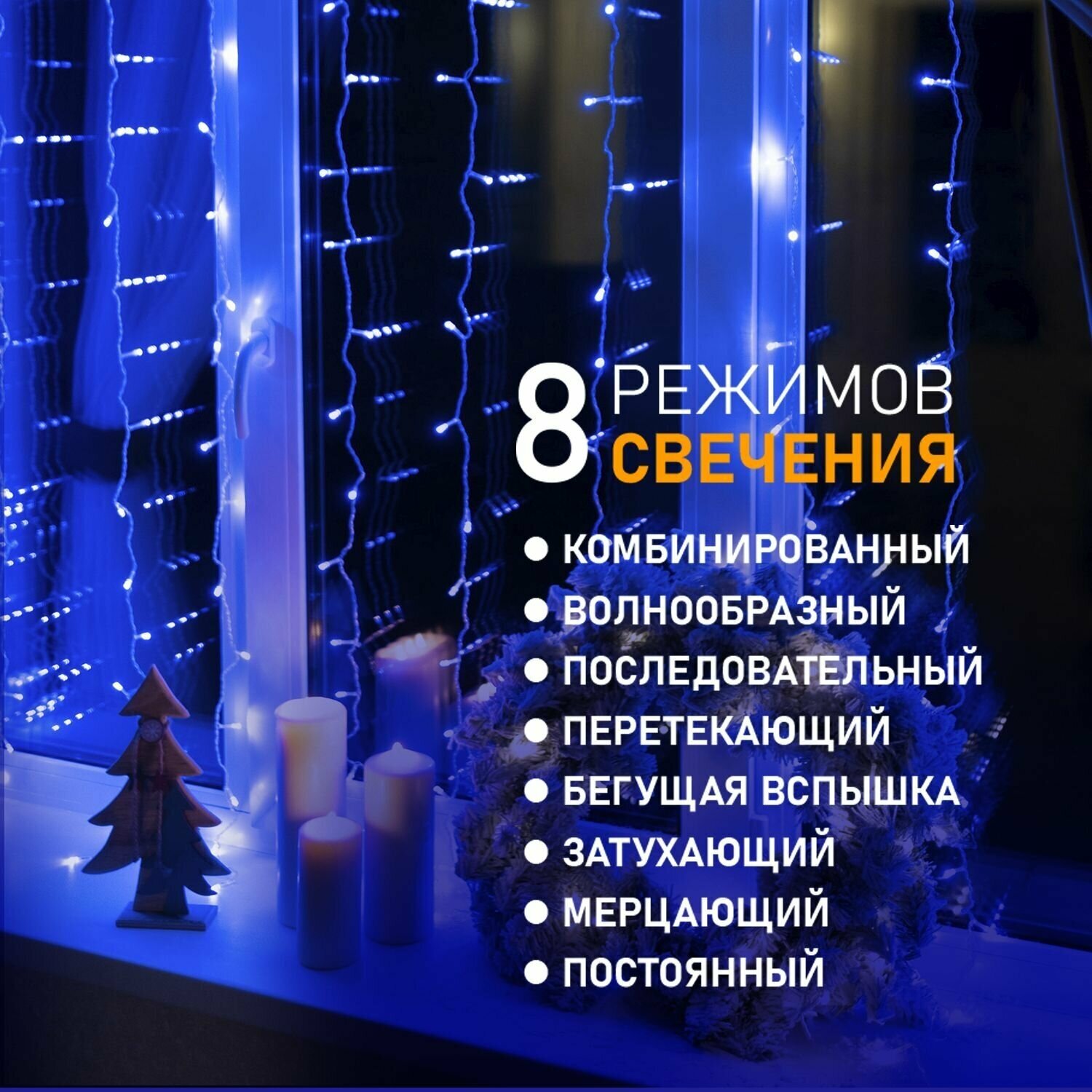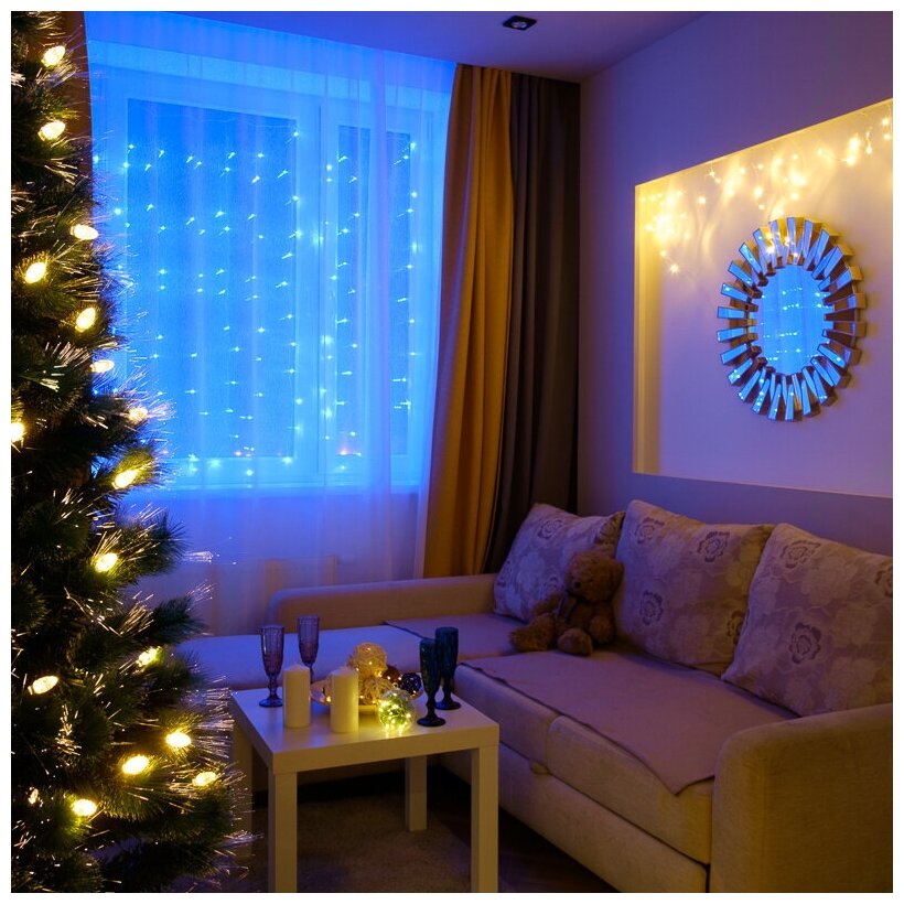 Светодиодная гирлянда Neon-night "Дождь" 2.5х2 м, 8 режимов, 300 синих светодиодов, прозрачный провод