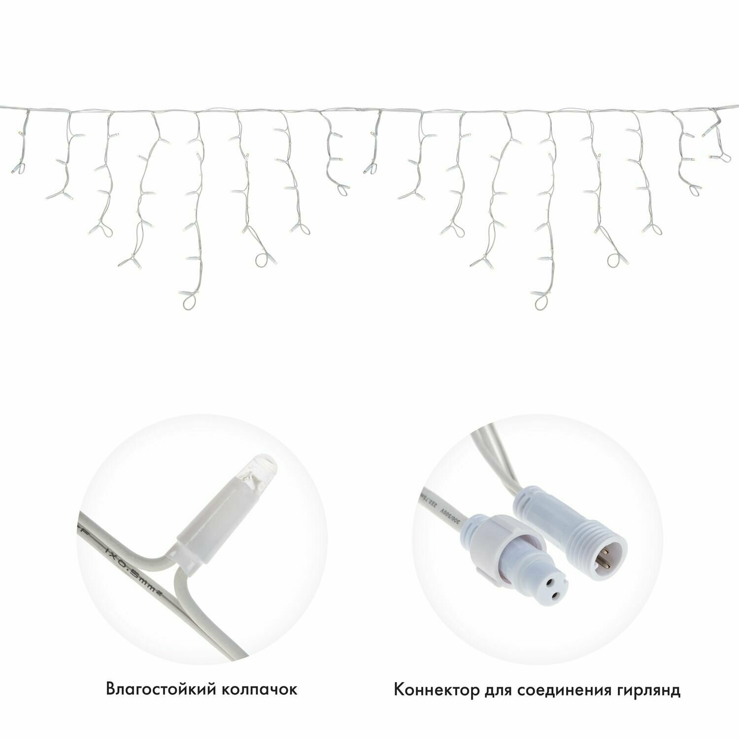 Гирлянда светодиодная «Айсикл» (бахрома) 4х0.6м 128LED бел. 8Вт 230В IP67 провод каучук черн. Neon-Night 255-225