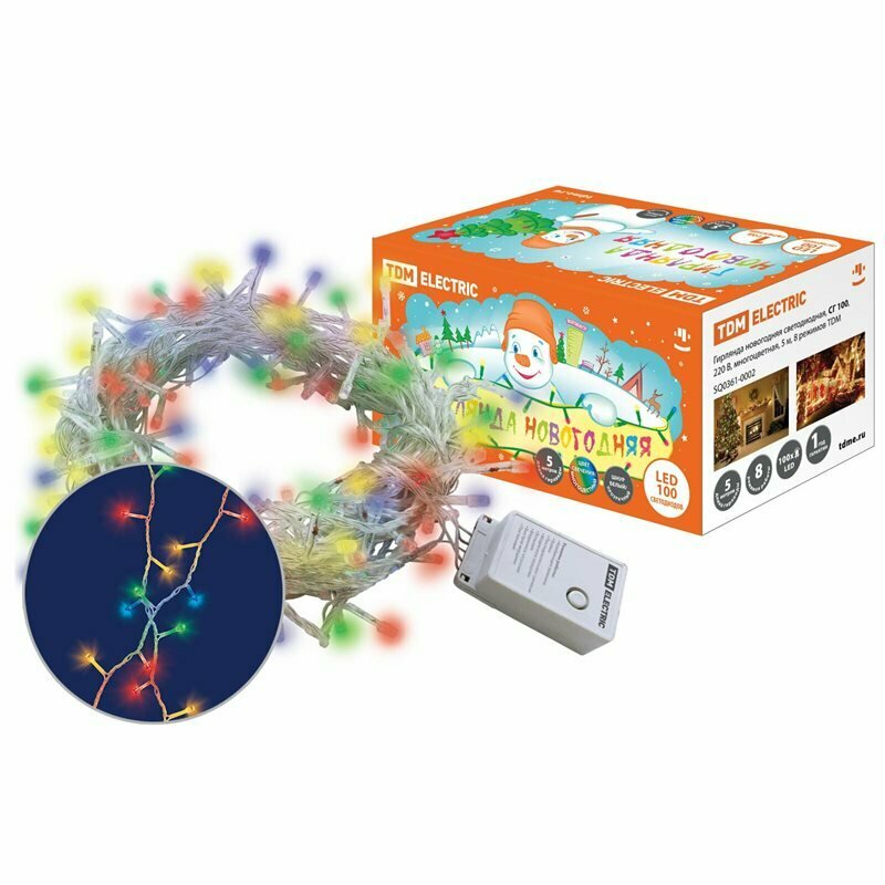 TDM SQ0361-0002 Гирлянда новогодняя светодиодная, СГ 100, 220 В, многоцветная, 5 м, 8 режимов