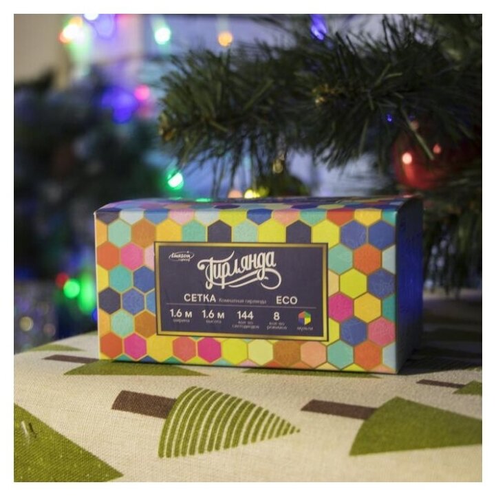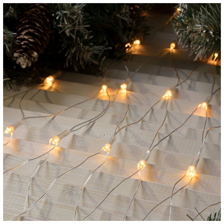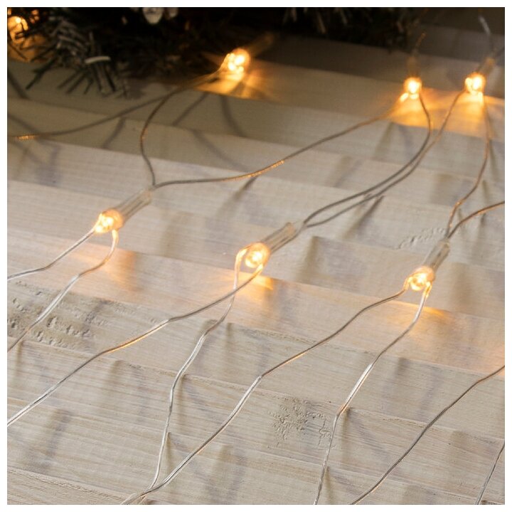 Гирлянда «Сеть» 1.6 × 1.6 м, IP20, прозрачная нить, 144 LED, свечение тёплое белое, 8 режимов, 220 В