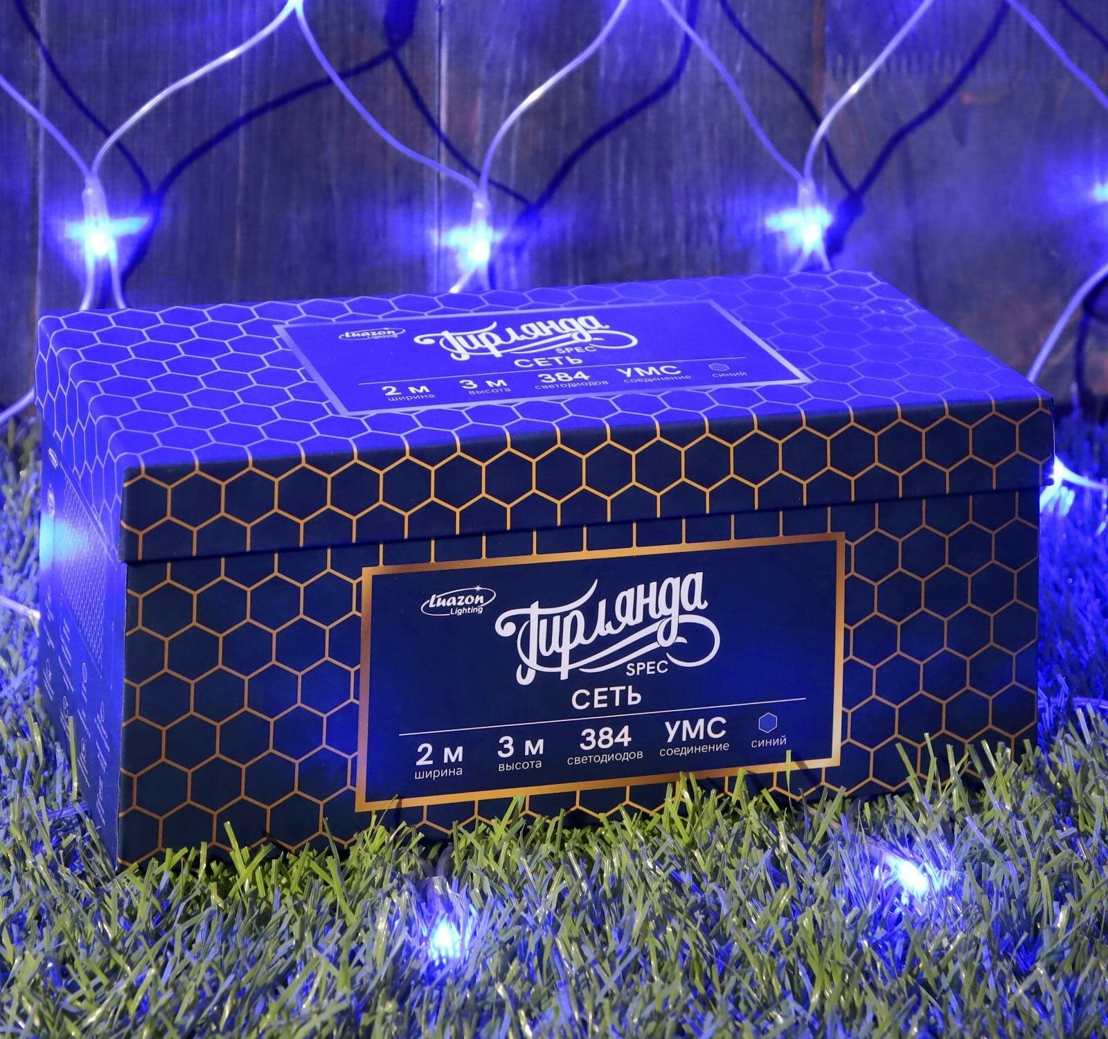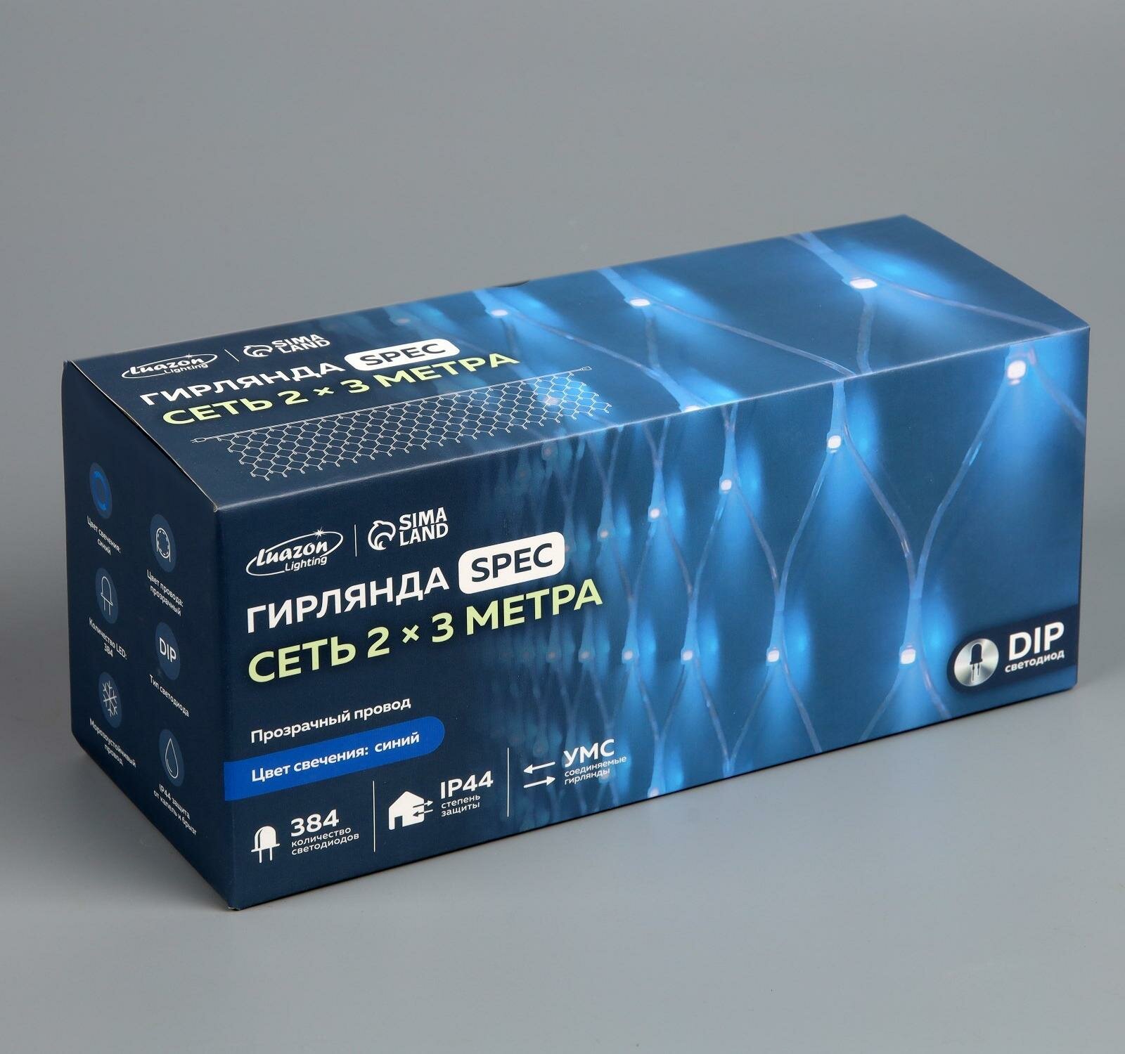 Гирлянда Luazon Lighting Spec Сетка, 0.26 х 3 х 2 м, 2 х 3 м, 384 лампы, синий/белый провод