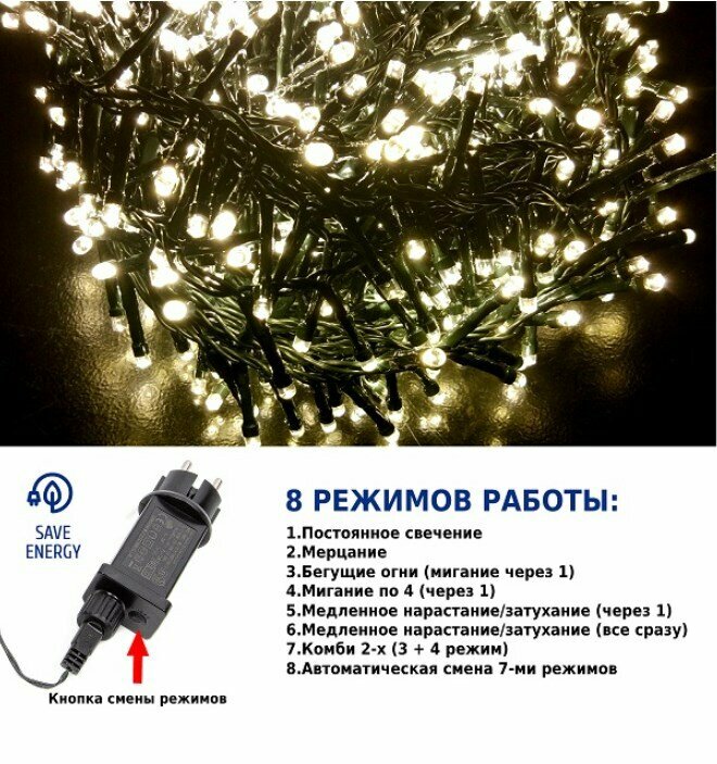 | Плюсы: | Отличная гирлянда. Яркий тёплый свет, разные режимы мерцания. Ёлочка великолепна с ней. Рекомендую к покупке! |
