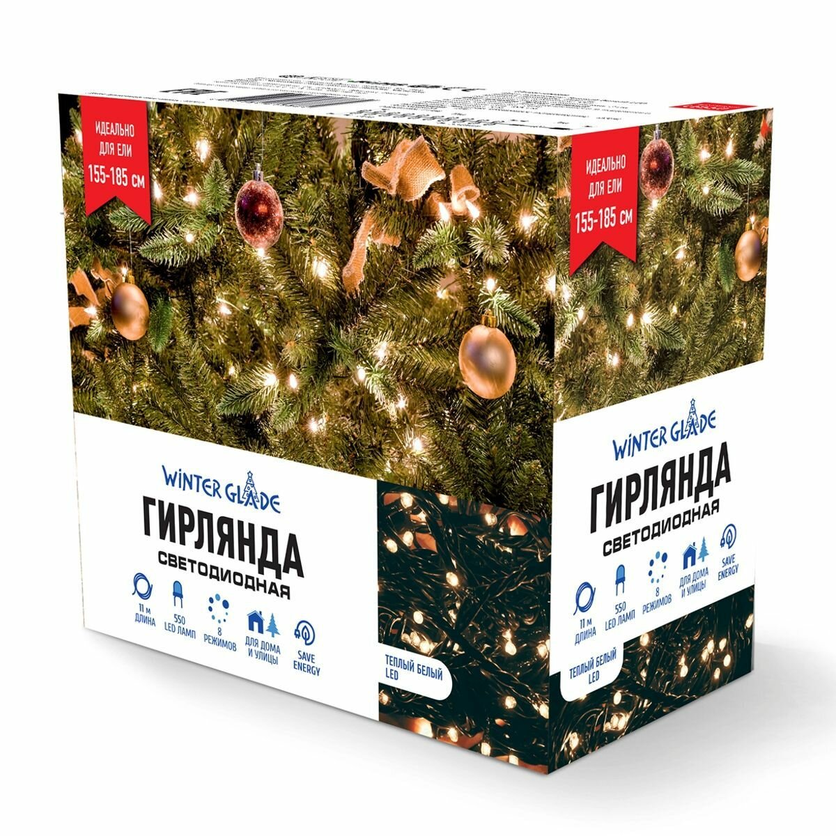 Ёлочная гирлянда Winter Glade Теплый белый свет 550 ламп (Длина гирлянды: 1100 см. Для елки 155-185 см. 8 режимов.) CВ550