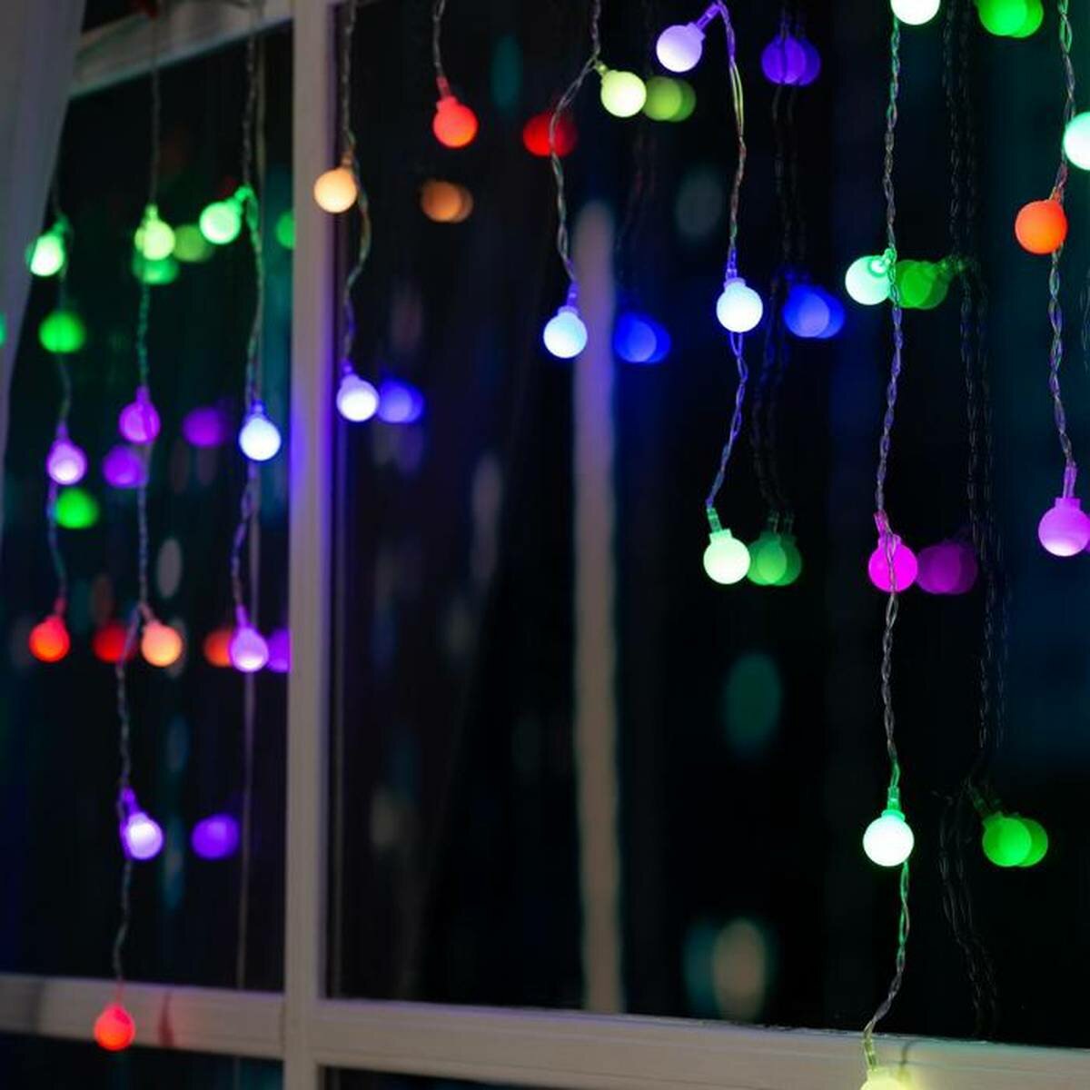Комнатные гирлянды Luazon Lighting Гирлянда «Бахрома» 1.8 × 0.5 м с насадками «Шарики», IP20, прозрачная нить, 48 LED, свечение мульти (RG/RB), мигание, 220 В