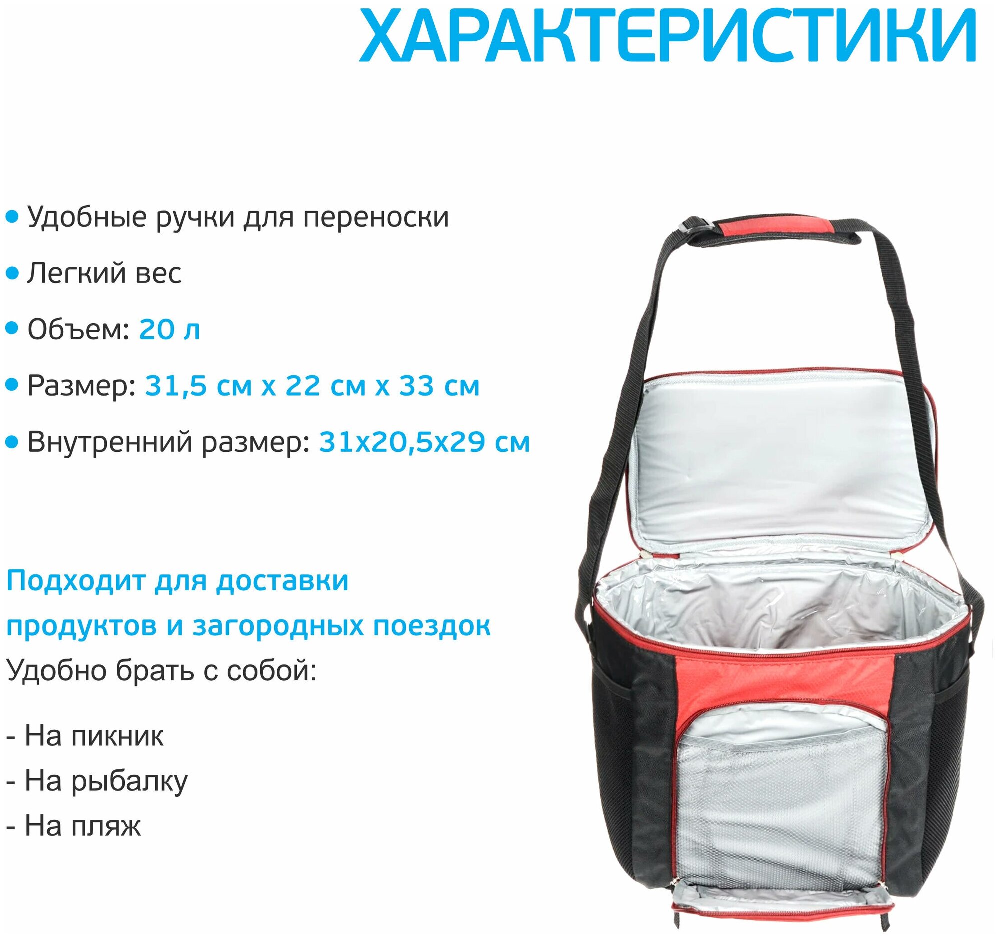 есть дополнительно карманы, что бы что-то положить не для заморозок) ручка есть маленькая наверху и можно как сумку нести, лямка тоже в комплекте длинная в принципе. Упакована была в коробку. |