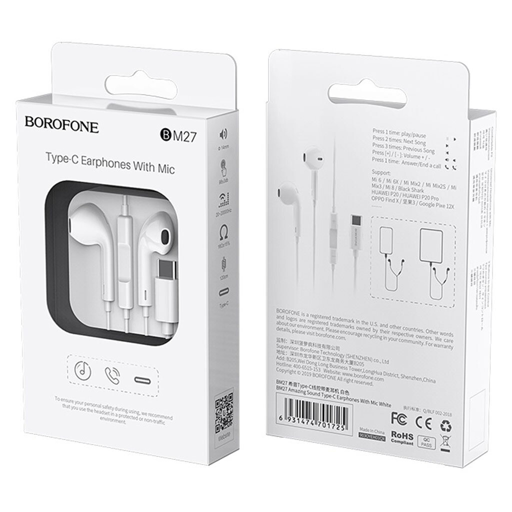 Наушники Borofone BM27 Amazing Sound Type-C Earphones - White