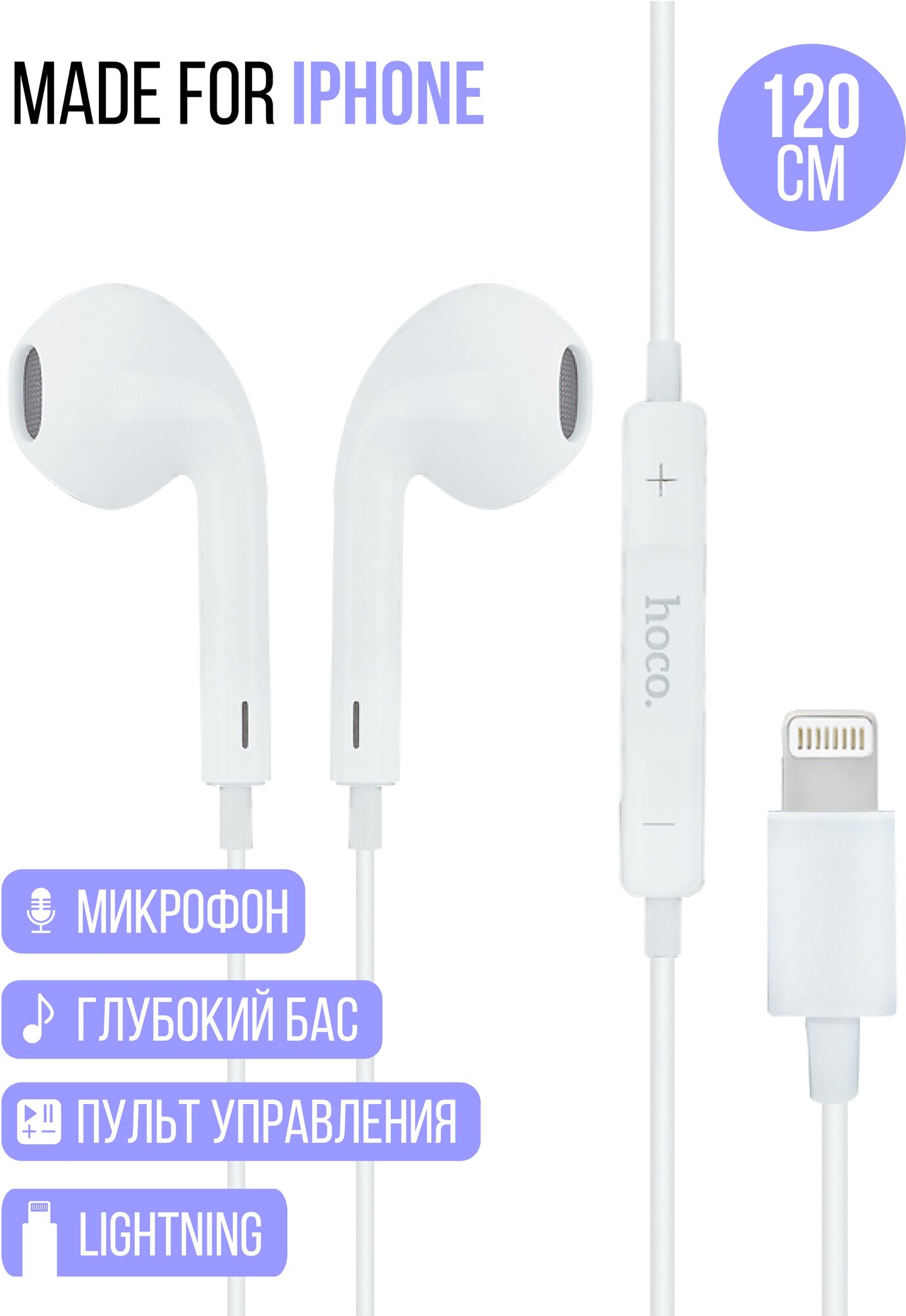 Наушники проводные с микрофоном Hoco L7 Plus, Lightning, 1.2 метра, белые