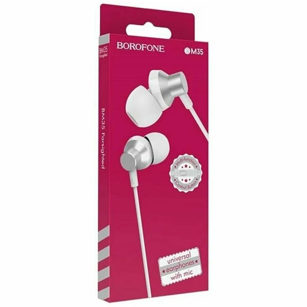 Гарнитура внутриканальная Borofone BM35 Farsighted, Jack 3.5mm, 1.2 м, Silver