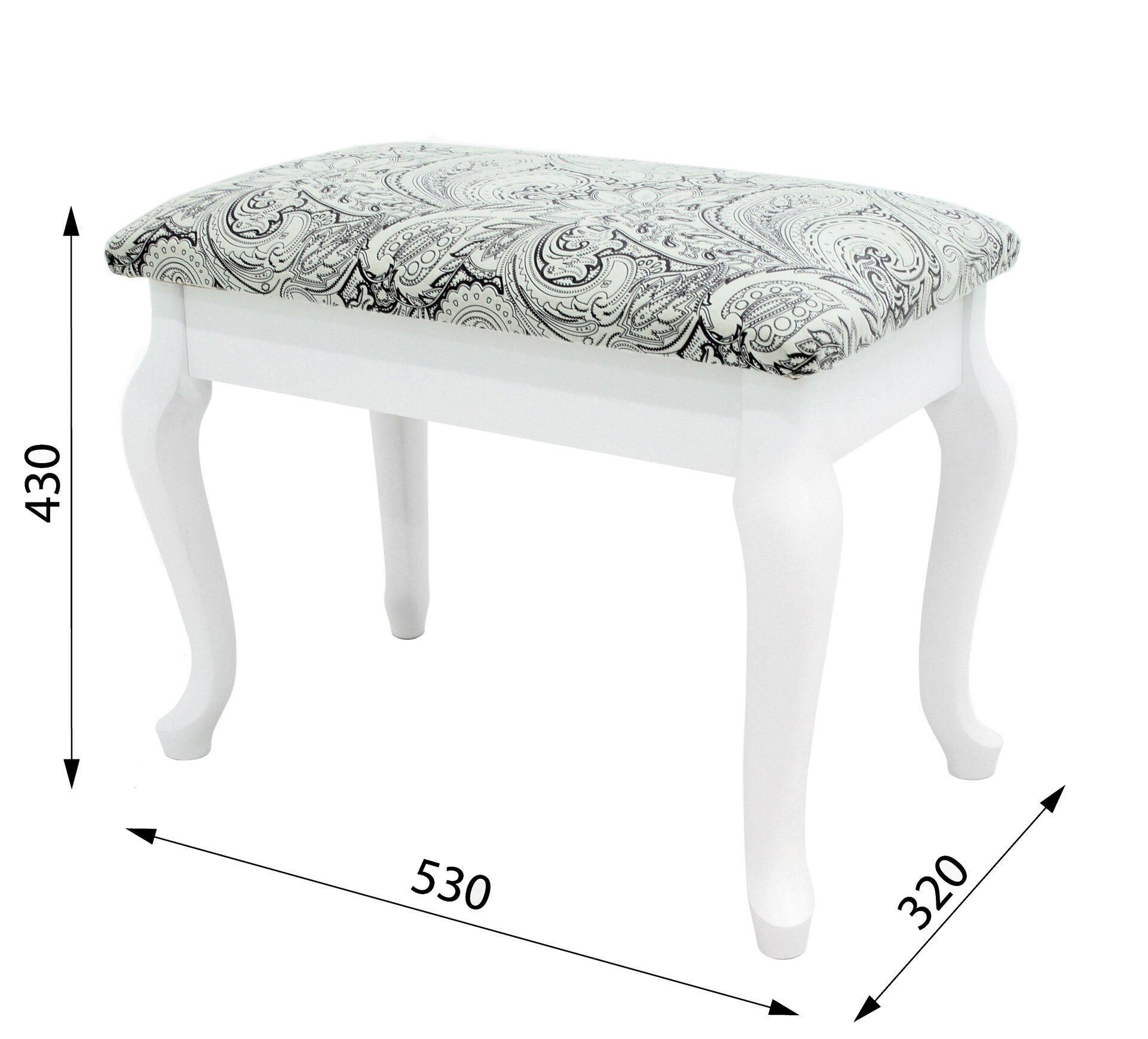 Банкетка-сундук Ретро, Цвет обивки: бежевый, синий с бежевым рисунком, Цвет корпуса: белый