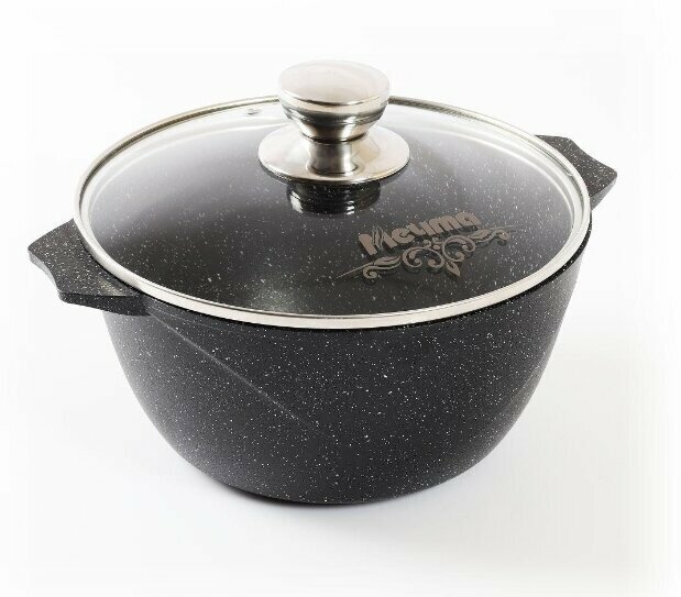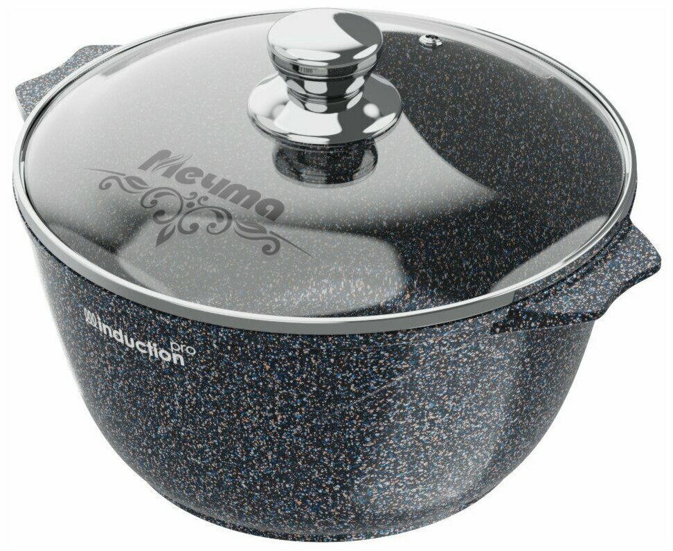 Кастрюля Мечта Гранит Black литая с антипригарным покрытием, со стеклянной крышкой, 6л, гранит black