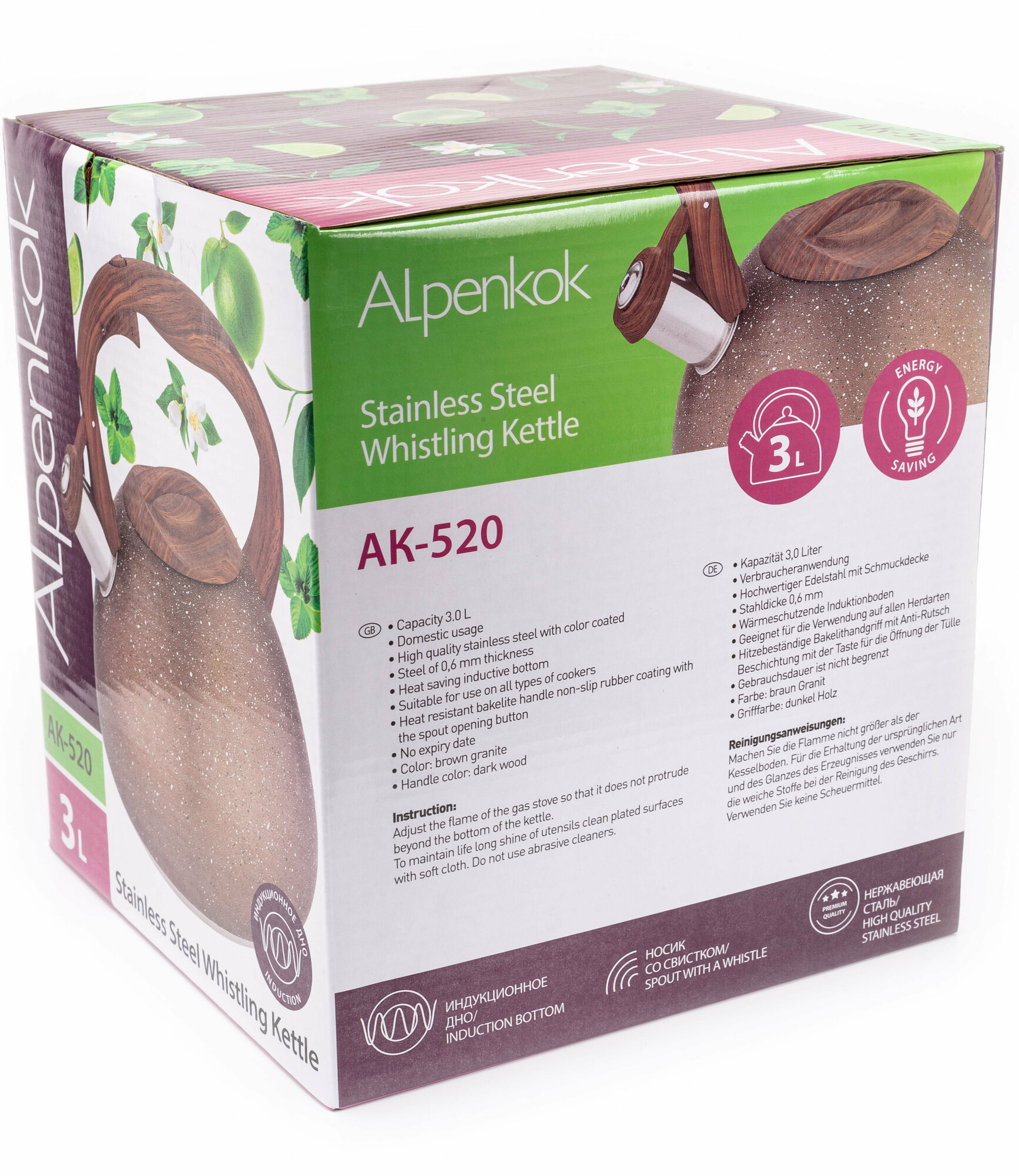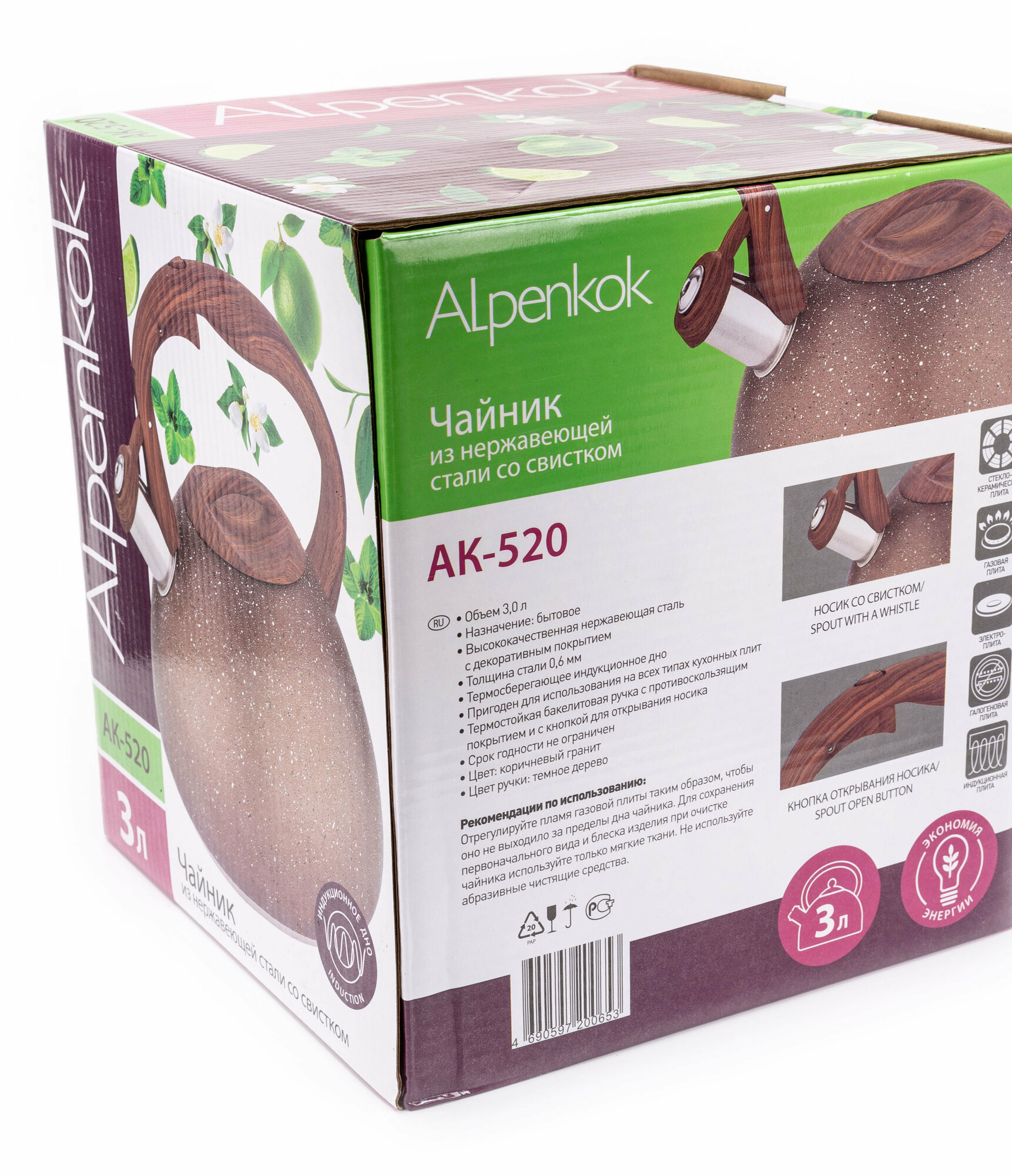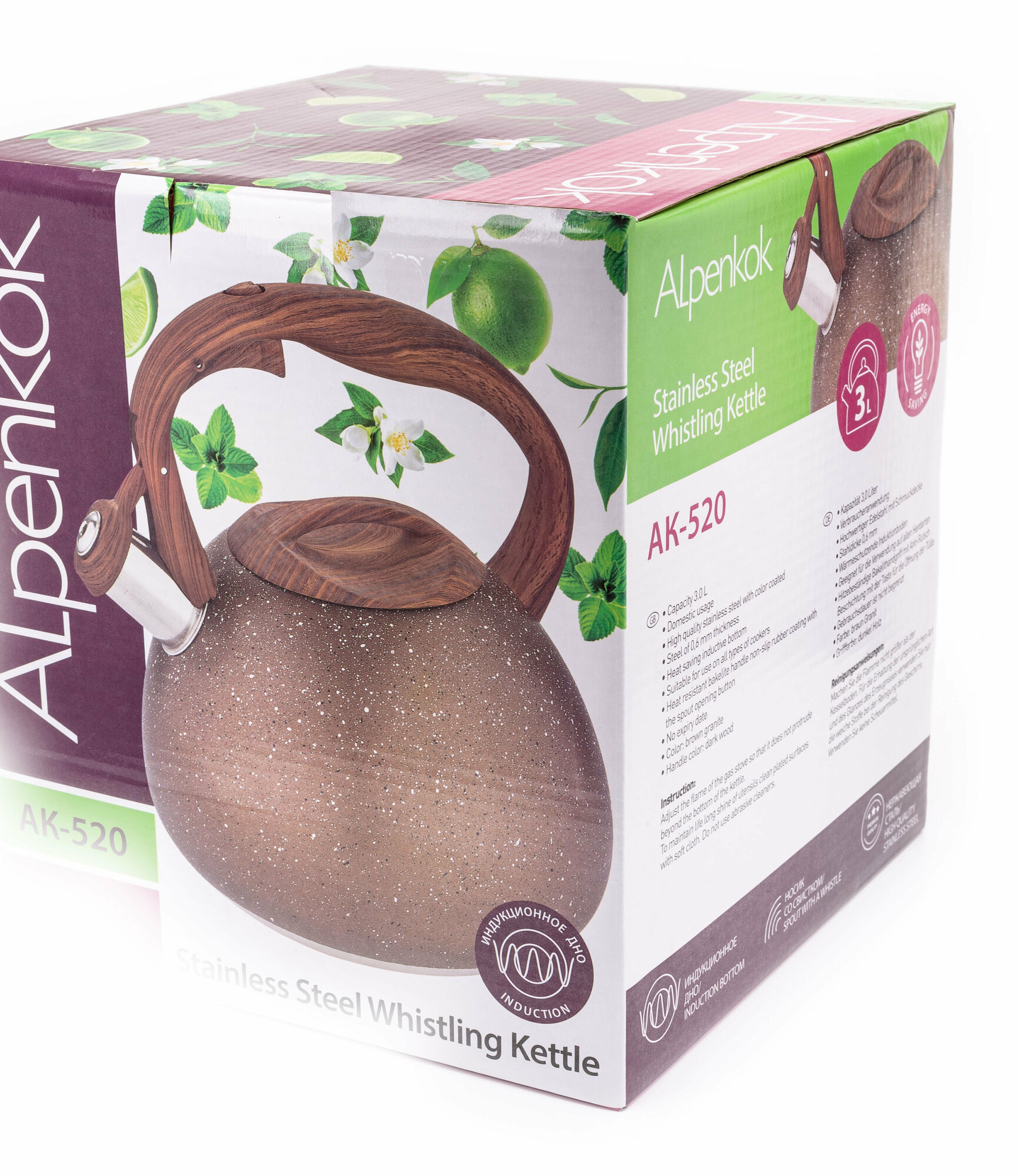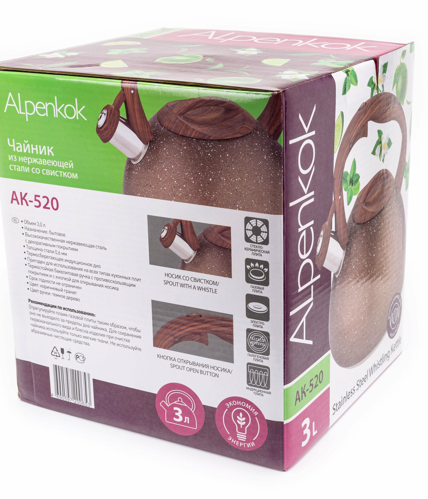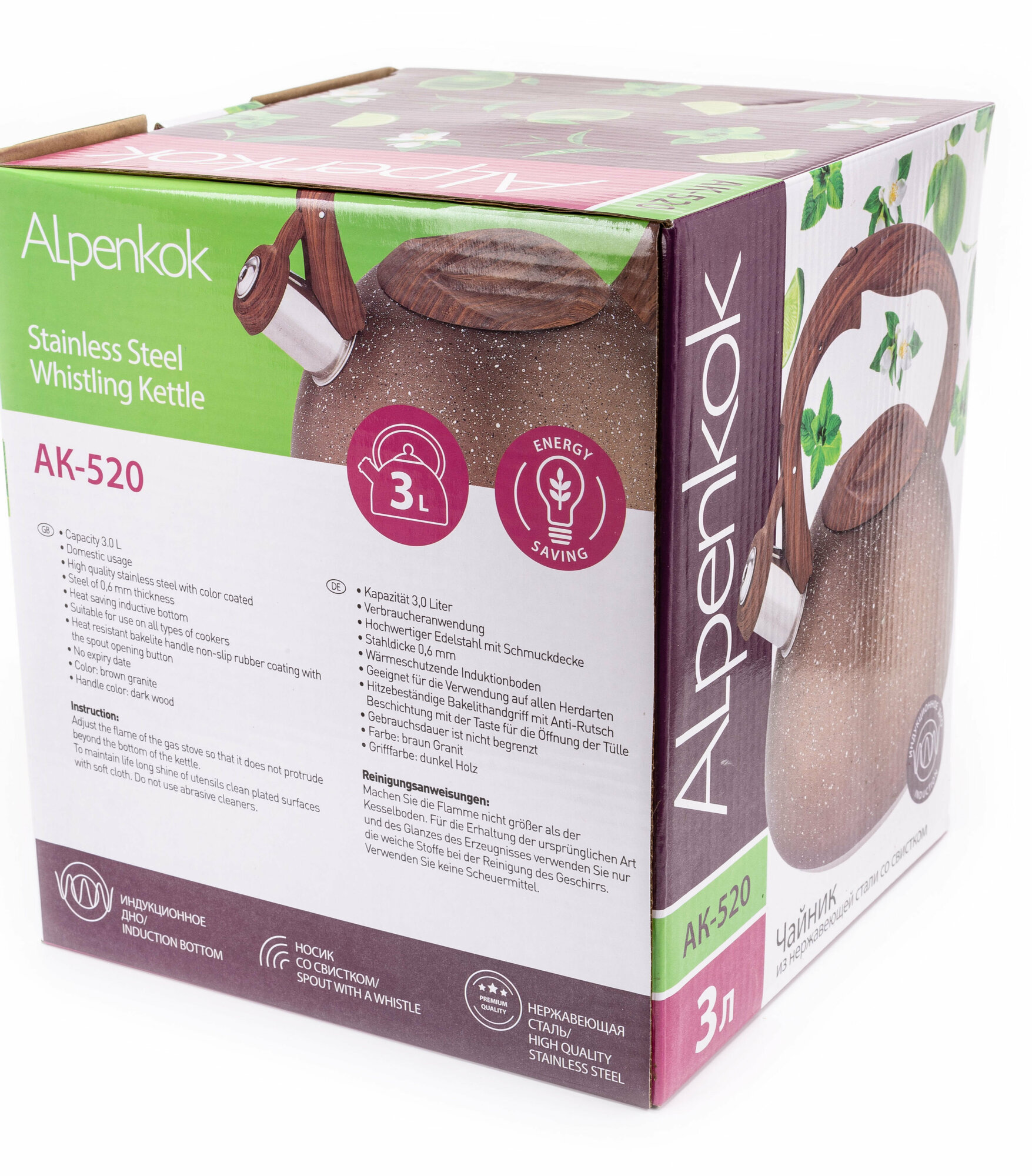 Alpenkok Чайник со свистком AK-520/AK-521 3 л, коричневый гранит