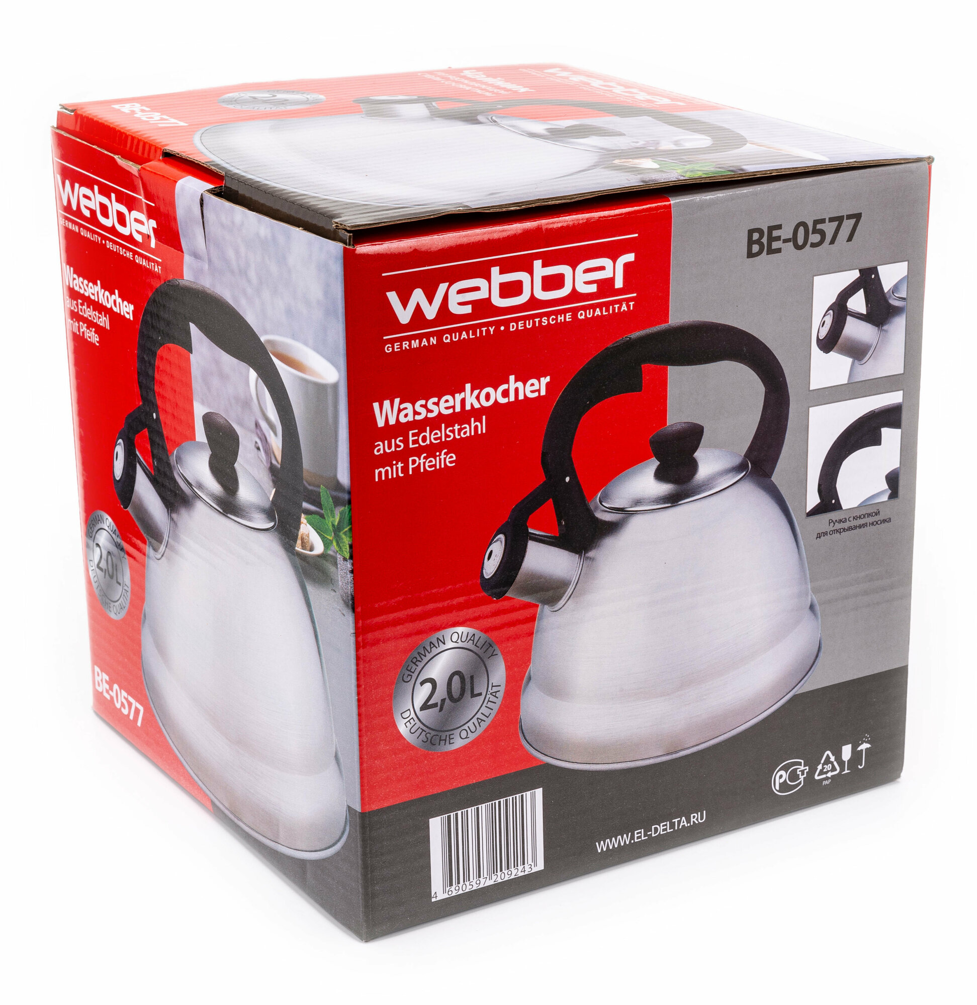 WEBBER BE-0577 Чайник из нержавеющей стали 2 л. со свистком