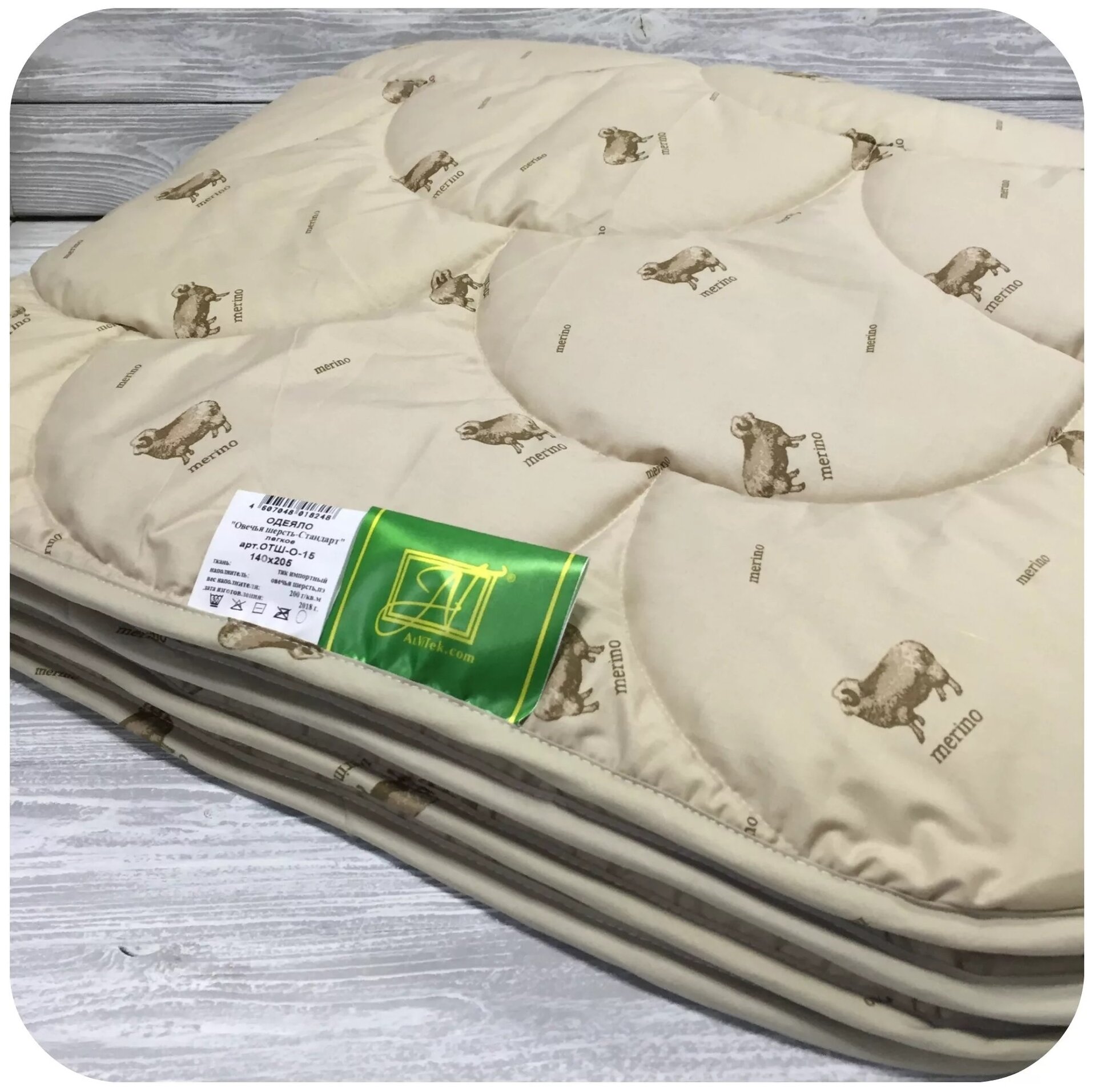 Одеяло стеганое альвитек овечья шерсть стандарт 140х205 легкое
