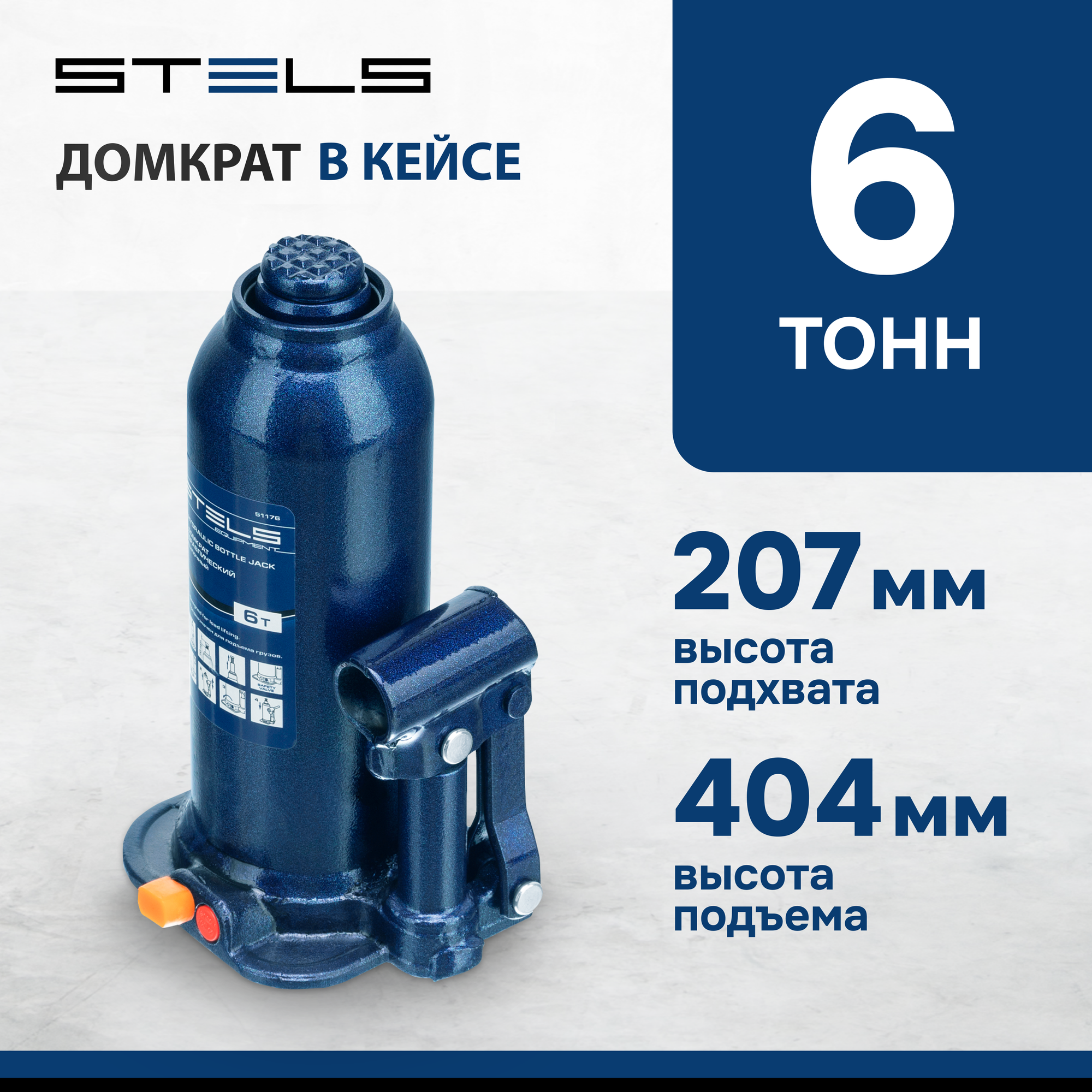 STELS Домкрат гидравлический бутылочный, 6 т, h подъема 207-404 мм, в пластиковом кейсе Stels, ( 51176 )