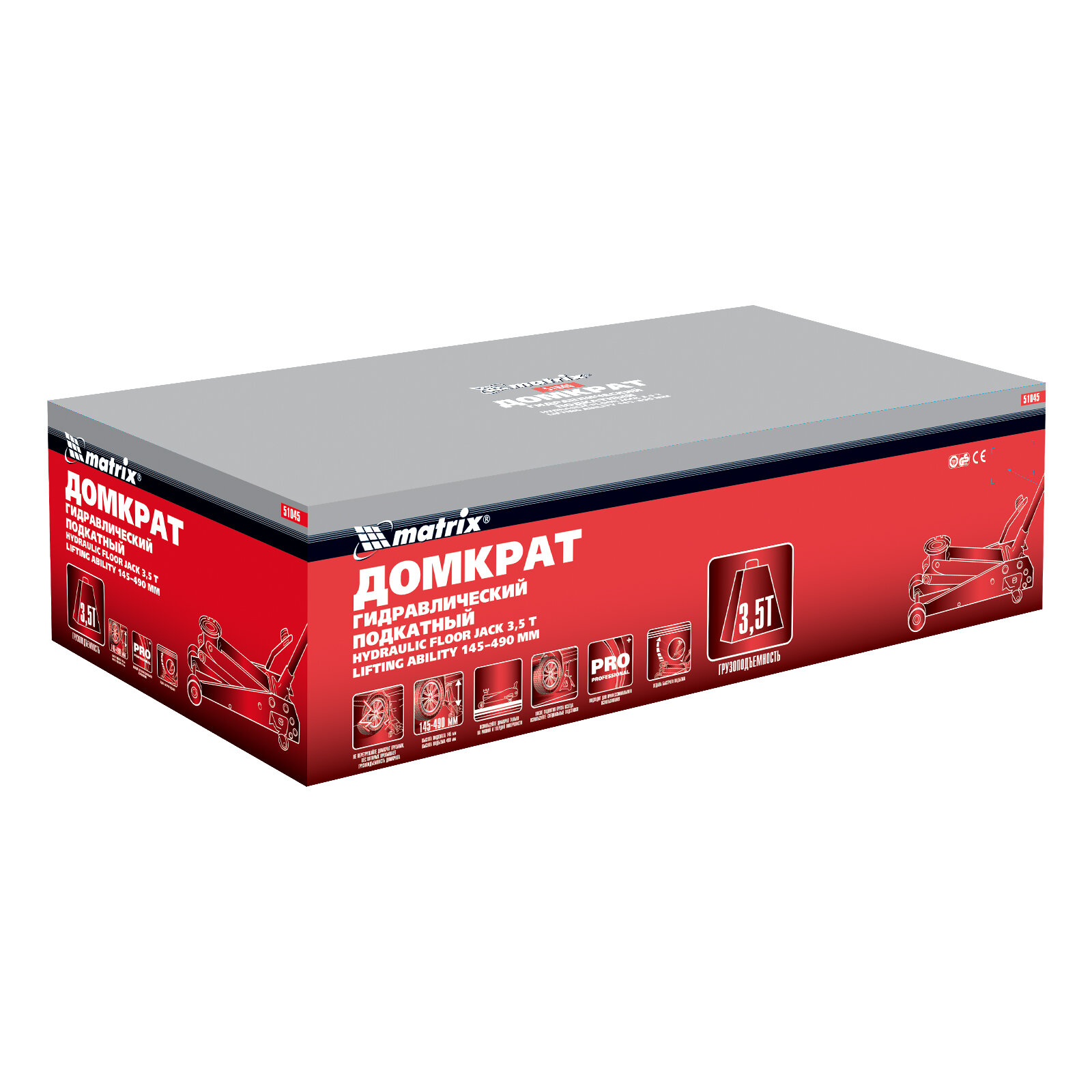 Купить Домкрат гидравлический подкатный, 3,5 т, h подъема 145–490 мм, с педалью Matrix [51045]