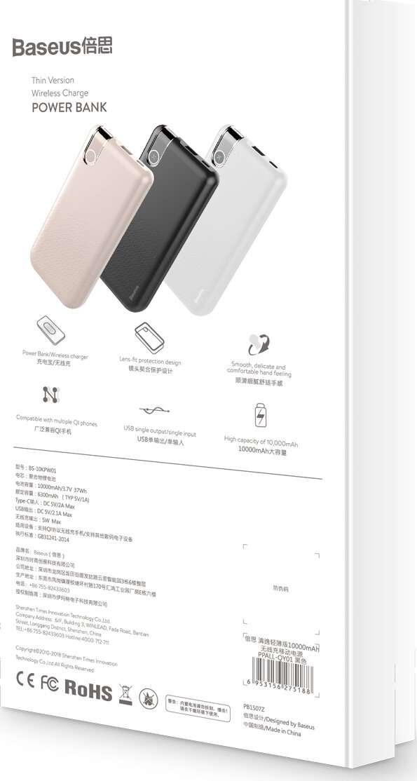 Внешний аккумулятор Baseus Thin Version Wireless Charge Power Bank 10000 mAh белый (PPALL-QY02)