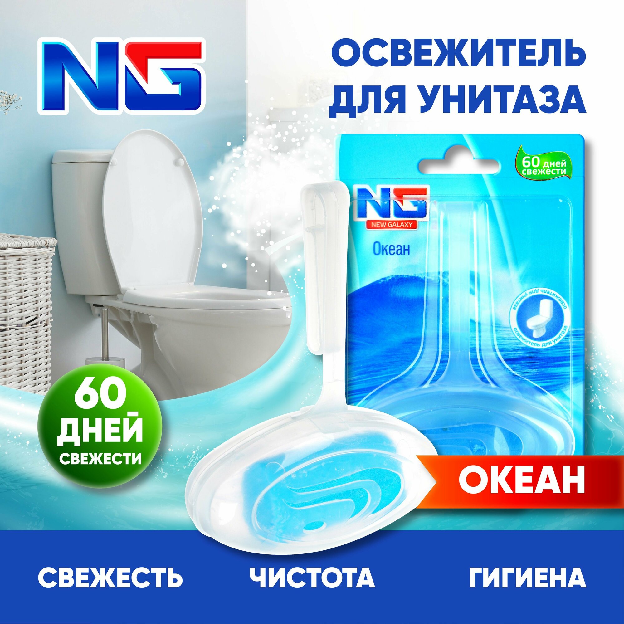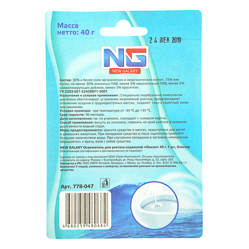 Освежитель для унитаза подвесной "Океан" 40гр. 1шт, блистер NEW GALAXY 1/48/ 778-047 интересное: