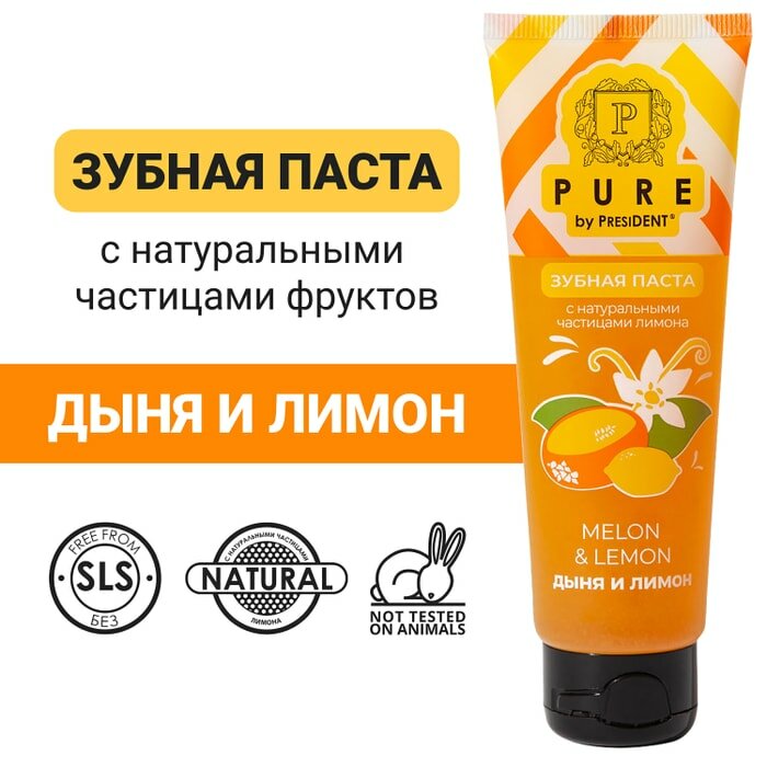 Зубная паста PURE by PRESIDENT® Дыня и лимон, 100 г