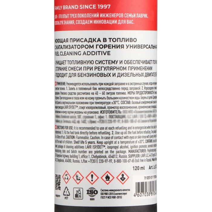 Присадка в бензин моющая LAVR с катализатором горения, на 40-60 л, 120 мл, Ln2126 интересное: