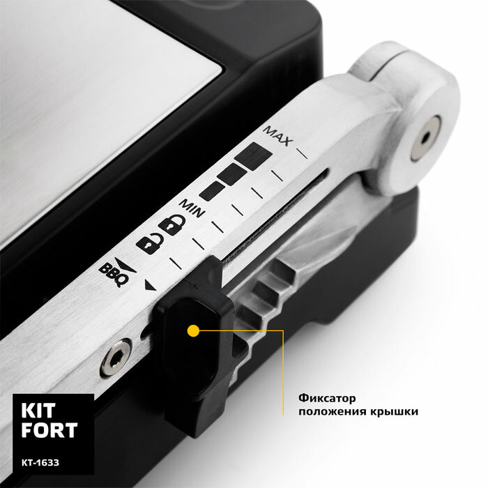 Электрогриль KITFORT КТ-1633, 1800 Вт, съемные панели, регулировка температуры, серебро/черный