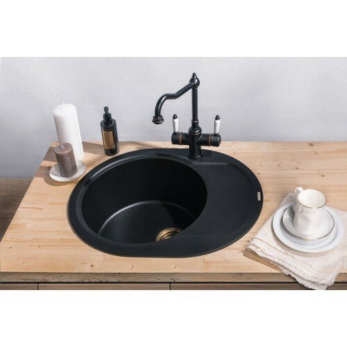 Кухонная мойка OMOIKIRI Sakaime 60E-BL (600 x 470 мм), врезная, Tetogranit, черный Omoikiri 4993120