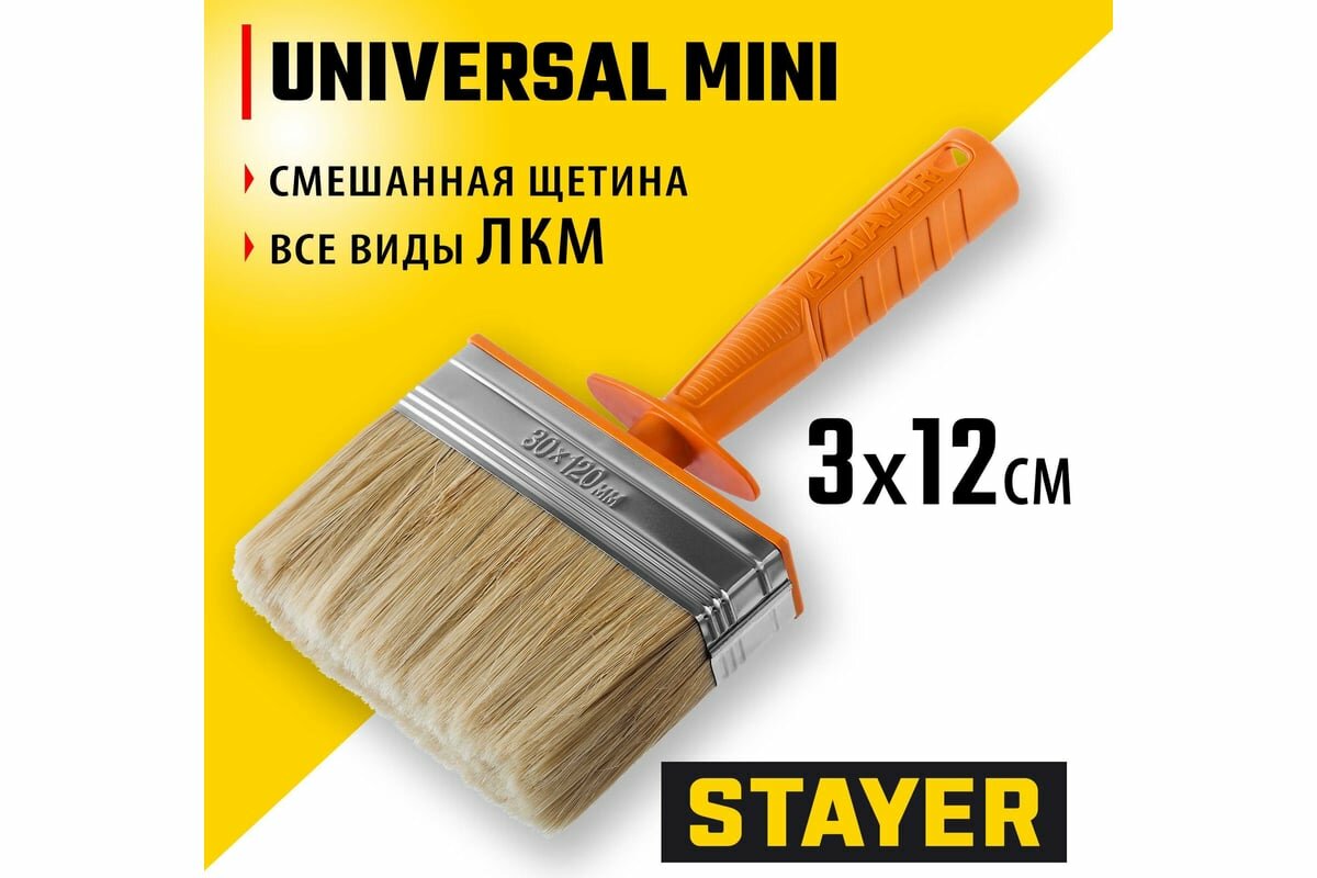 STAYER UNIVERSAL MINI 3х12 см, светлая натуральная щетина, пластмассовый корпус, Макловица, PROFESSIONAL (0182-12)