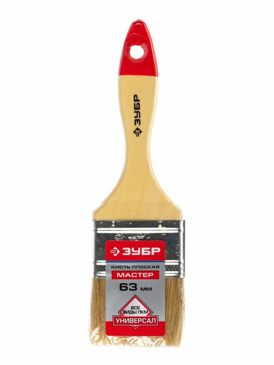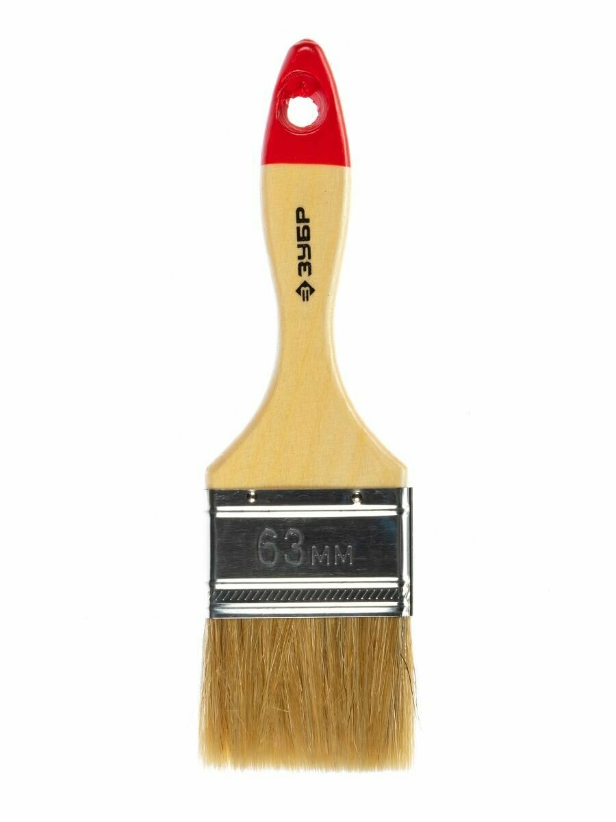ЗУБР Универсал 63 мм, 2,5 светлая натуральная щетина, деревянная ручка, Плоская кисть, мастер (4-01003-063)