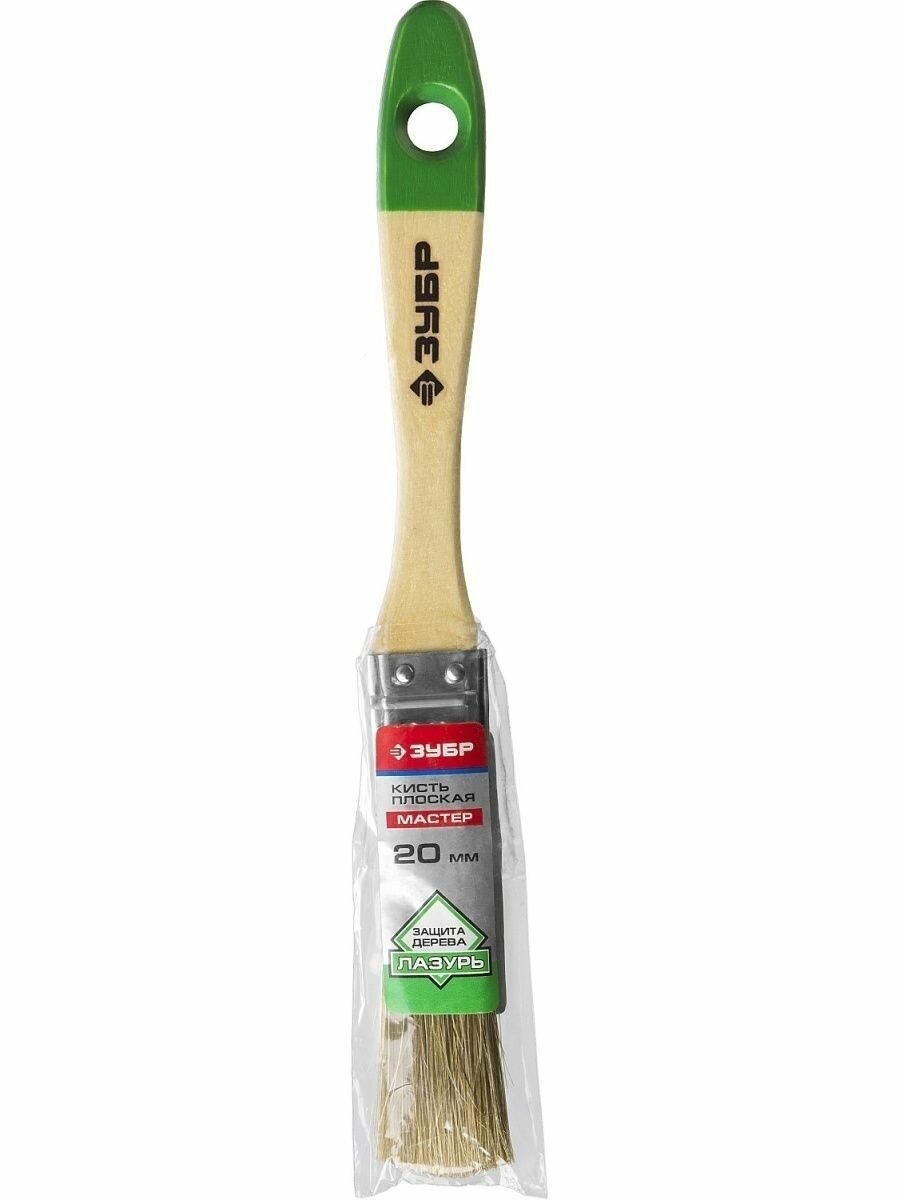 ЗУБР Лазурь 100 мм, 4'' светлая смешанная щетина, деревянная ручка, Плоская кисть, мастер (4-01009-100)