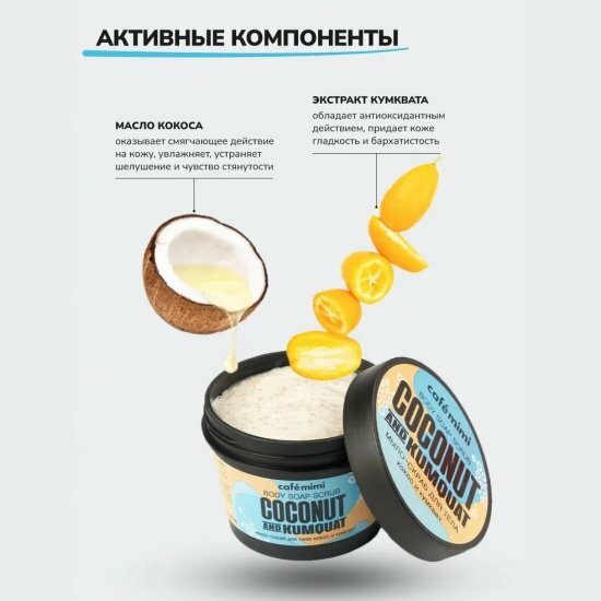 Cafe Mimi Мыло-скраб для тела кокос и кумкват 110 мл 1 шт интересное: