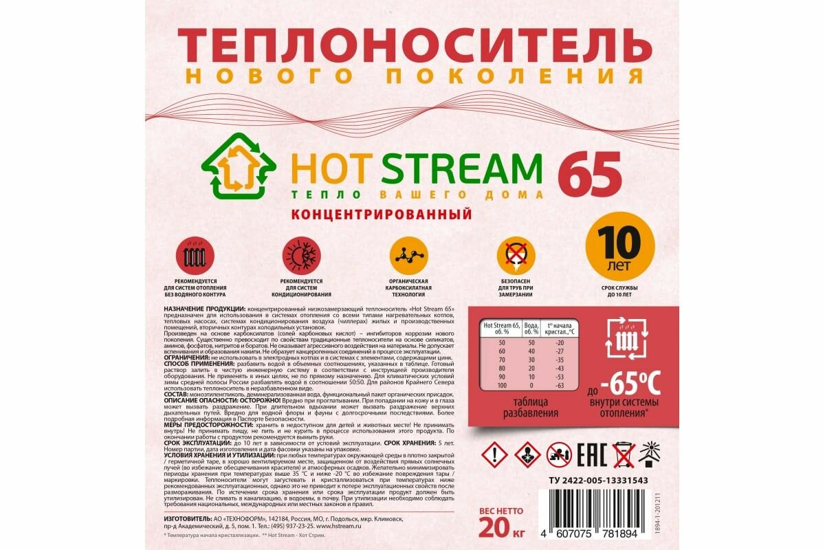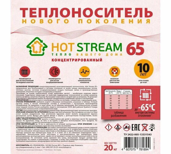 Теплоноситель 65 20кг Hot Stream 18057531