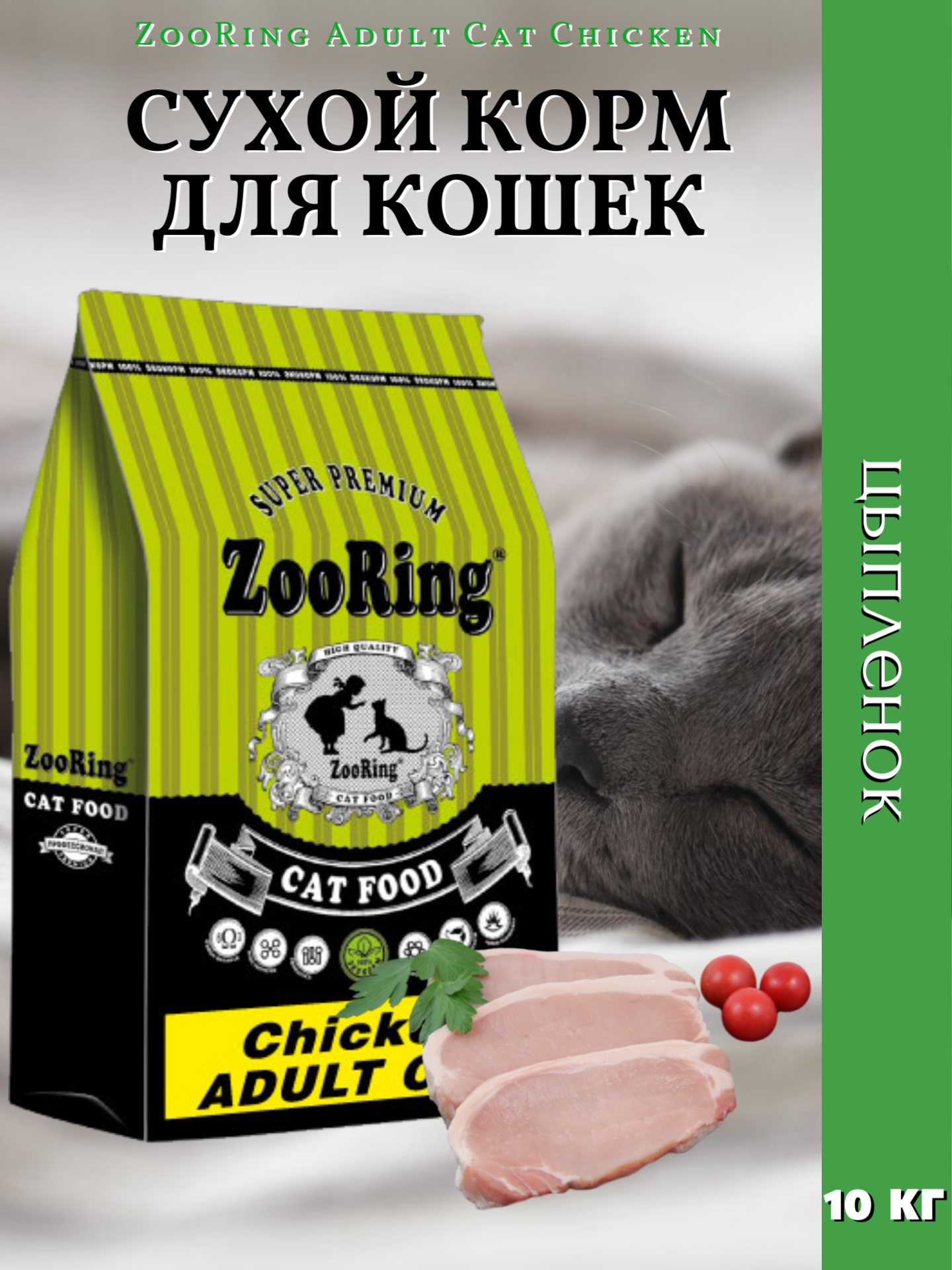 ZooRing Adult Cat Chicken, Сухой корм для кошек, Цыпленок 10кг