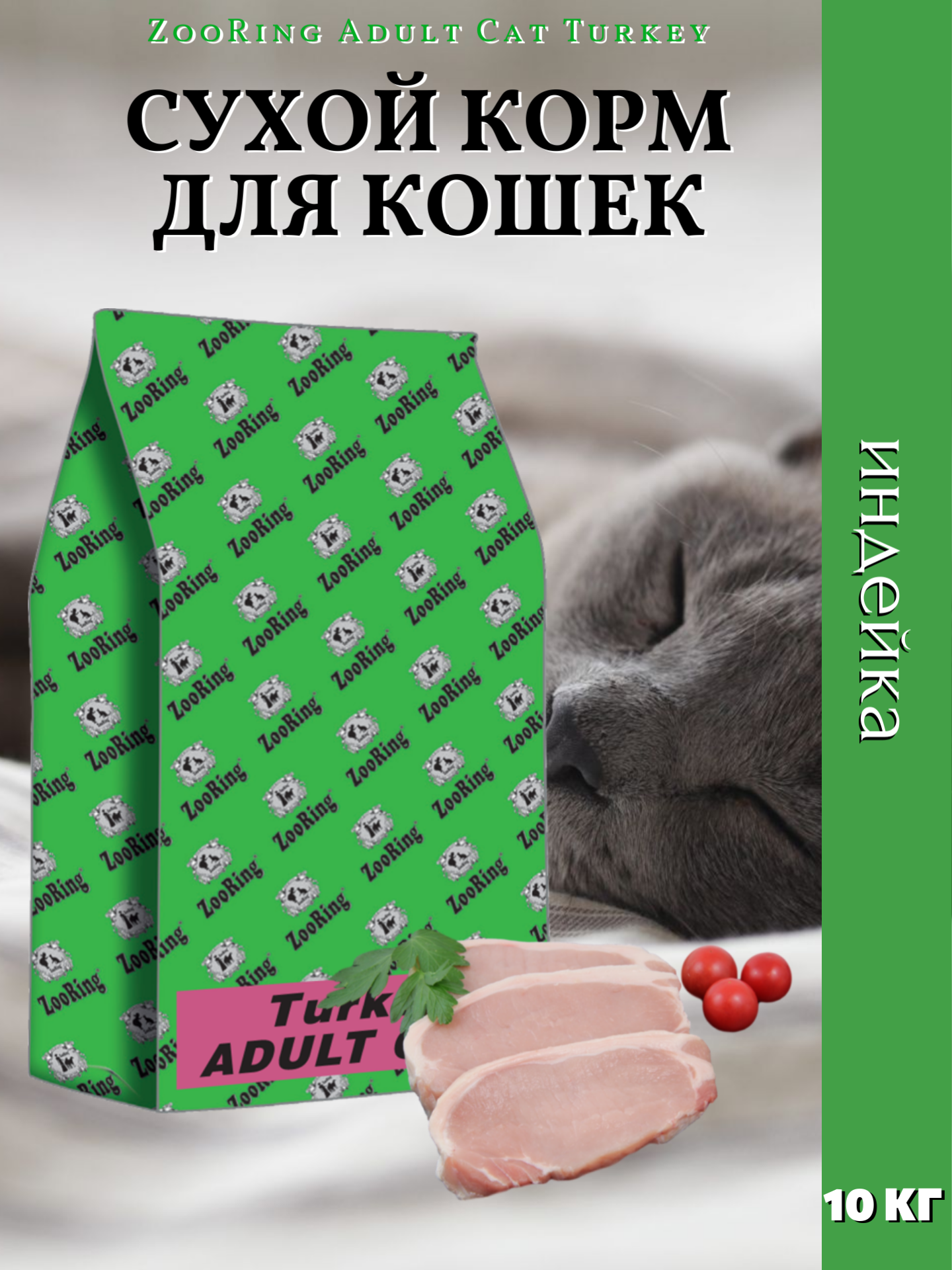 Сухой корм для кошек ZOORING ADULT CAT TURKEY индейка С пребиотиком 10 кг сухой корм для молодых и взрослых кошек всех пород