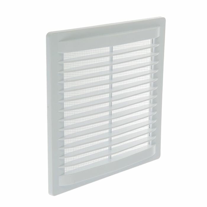 Решетка вентиляционная разъемная с москитной сеткой, прямые жалюзи, 203х203, белая