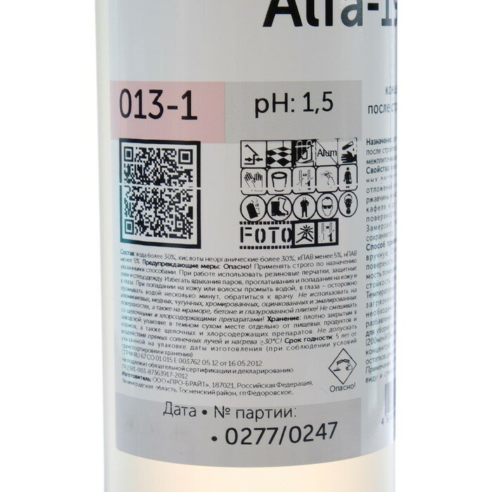 Промышленная химия Pro-Brite Alfa-19, 1л, средство-концентрат для уборки после строительства и ремонта (013-1)