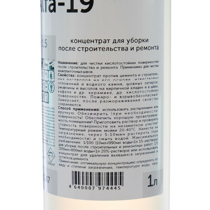Концентрат для уборки после ремонта Alfa-19, 1л