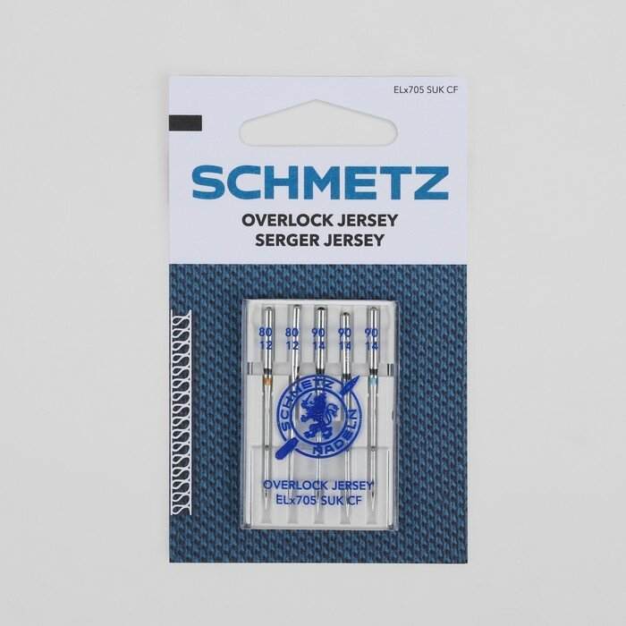 Schmetz Иглы для плоскошовных и оверлок машин, для джерси, №80/90, 5 шт