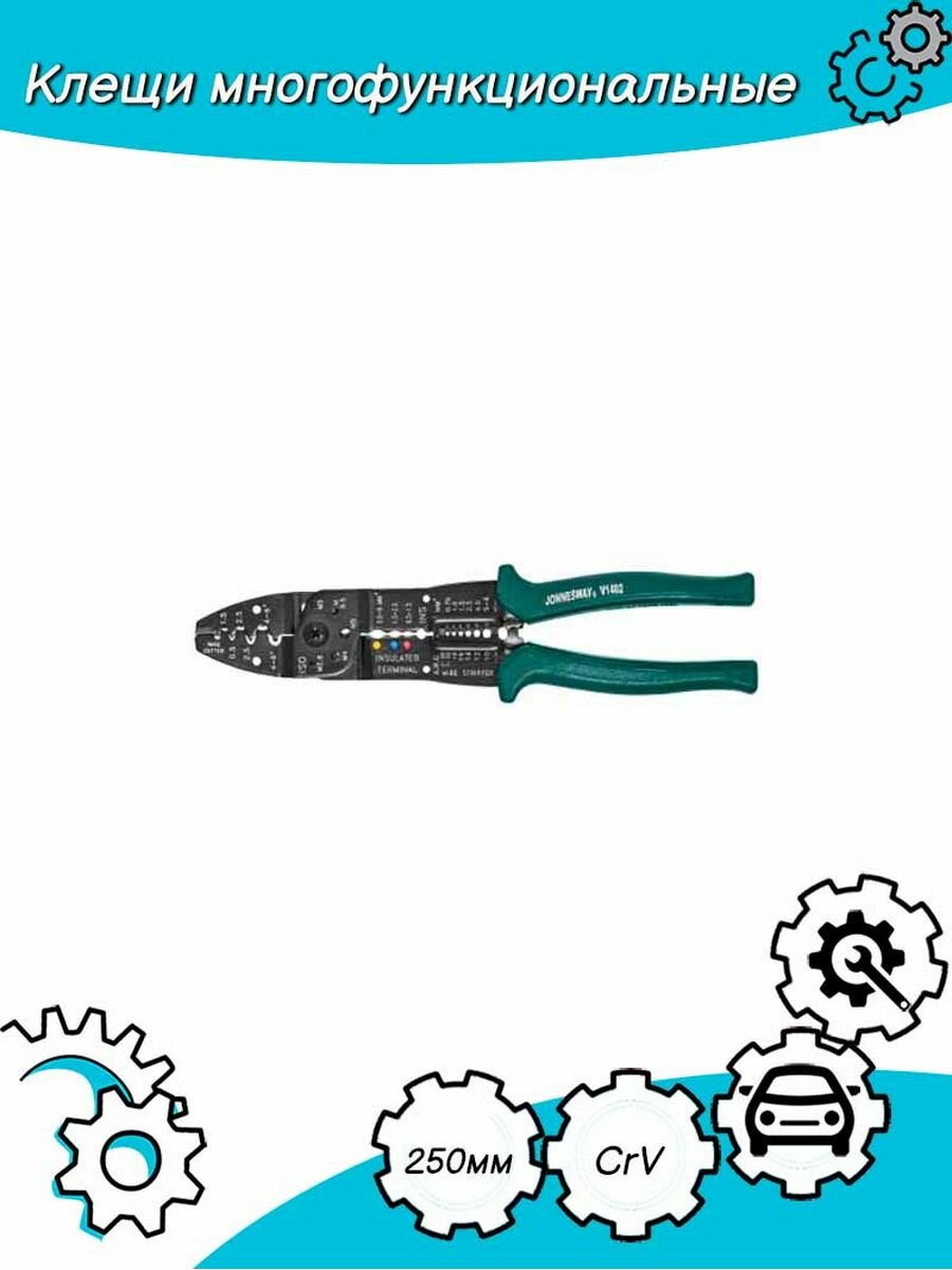 JONNESWAY V1402 Клещи многофункциональные для снятия изоляции и обжима наконечников, 250 мм 1шт
