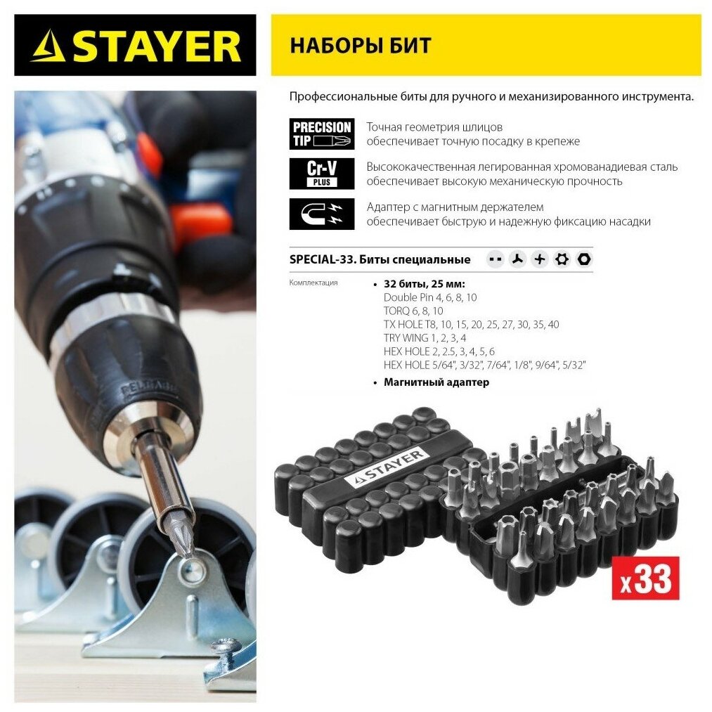 STAYER 33 шт, Набор специальных бит с магнитным адаптером (26084-H33)