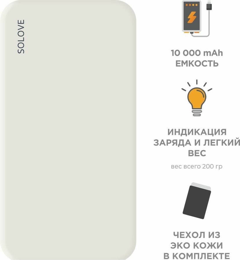Купить Внешний аккумулятор Power Bank SOLOVE 10000mAh Type-C с 2xUSB выходом, кожаный чехол (001M+ White RUS)