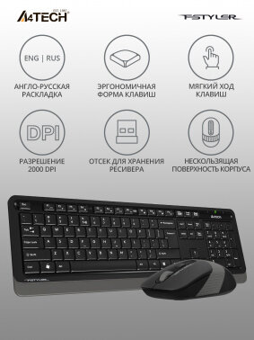 Комплект клавиатура и мышь A4TECH Fstyler FG1010 черный/серый USB беспроводная (1147570)