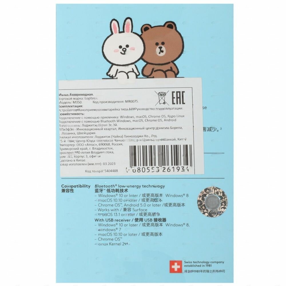Беспроводная компактная мышь Logitech Pebble M350 Line Friends Brown (910-005781)