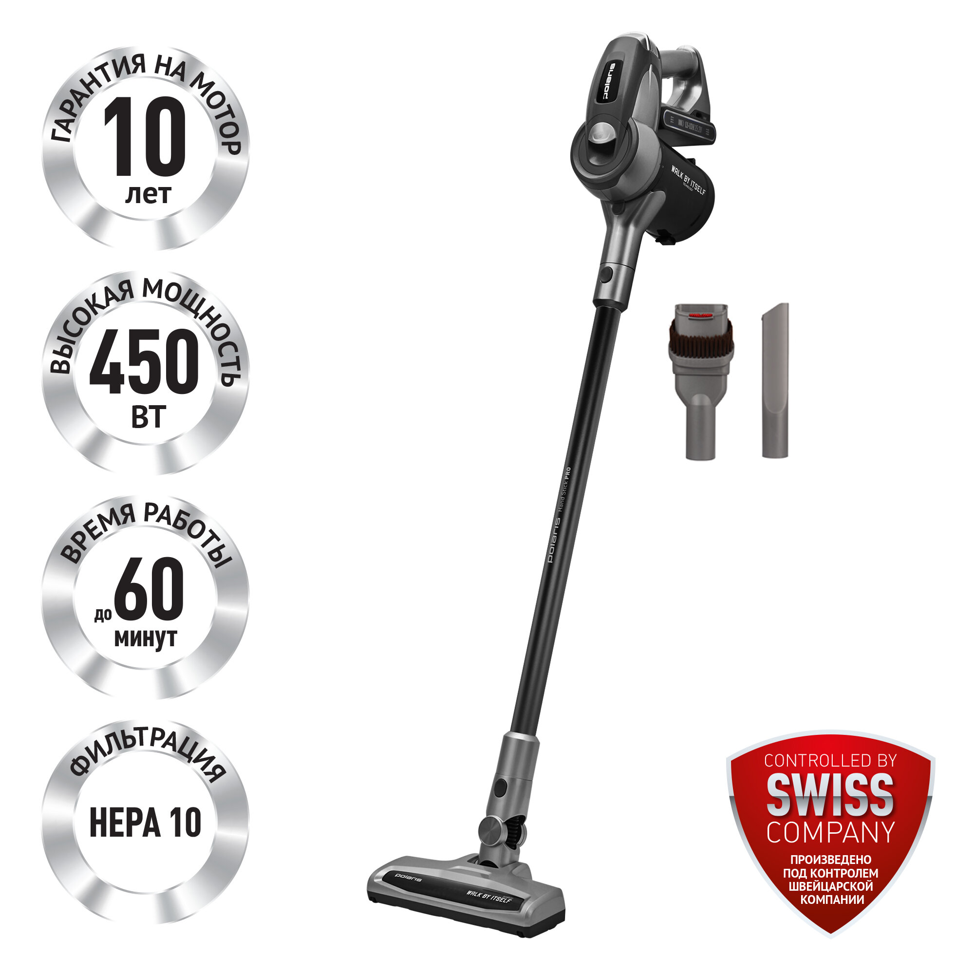 Вертикальный пылесос Polaris PVCS 1101 HandStickPRO, серебристый